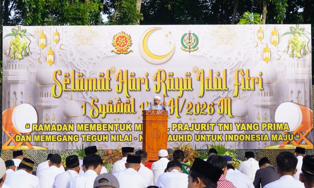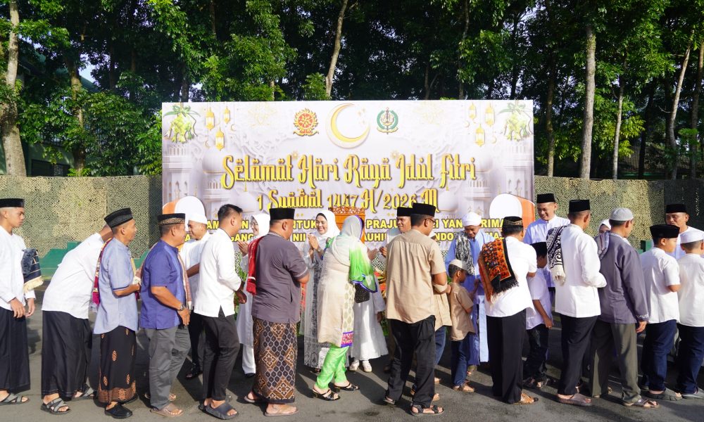 Pendiv2 – Gema takbir menggetarkan hati, menyelimuti Lapangan Hitam Madivif 2 Kostrad, Singosari, suasana penuh syahdu dan religius. Ratusan prajurit bersama keluarga dan masyarakat larut dalam lantunan takbir, menandai tibanya hari kemenangan Idul Fitri 1447 Hijriah / 2026 Masehi, Sabtu (21/3/2026).