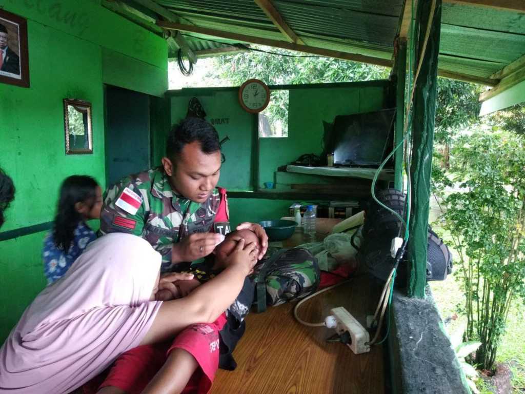 “Korban dibawa ke Pos oleh Ibunya Naura (34) dengan berjalan kaki dan kami segera lakukan pertolongan pertama terhadap korban oleh personel kesehatan a.n Pratu Allan,” ungkap Danpos.