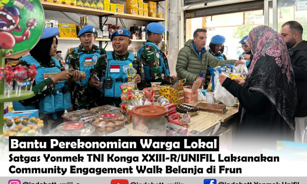 Pendiv2 – Dalam rangka membantu perekonomian warga di daerah misi, Satgas Yonmek TNI Konga XXIII-R/UNIFIL di akhir bulan Ramadhan tetap melaksanakan kegiatan Community Engagement Walk (KLE) untuk berbelanja di kios-kios wilayah binaan Delta Company tepatnya di Frun Village. Selasa (09/04/2024).