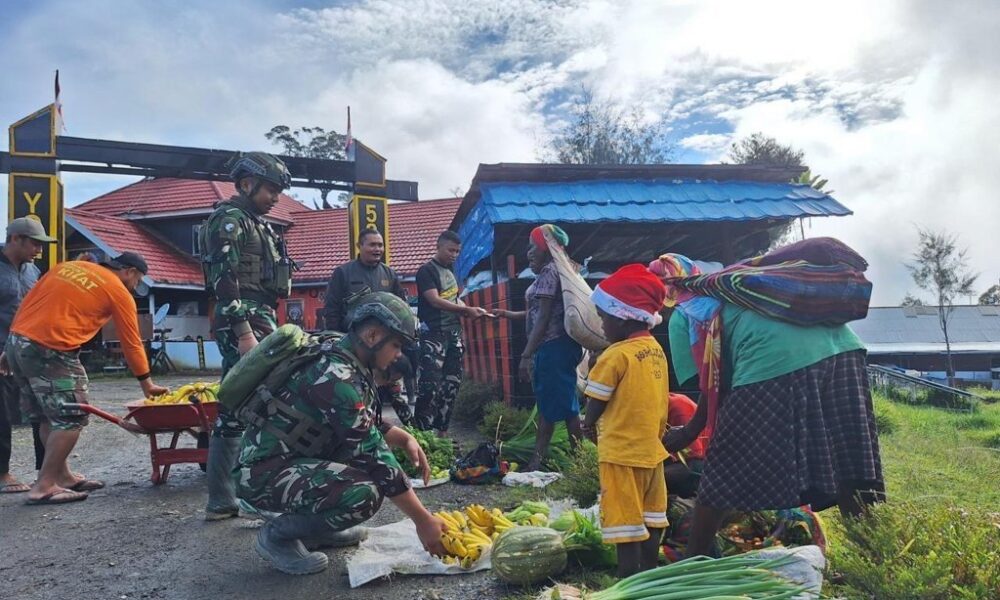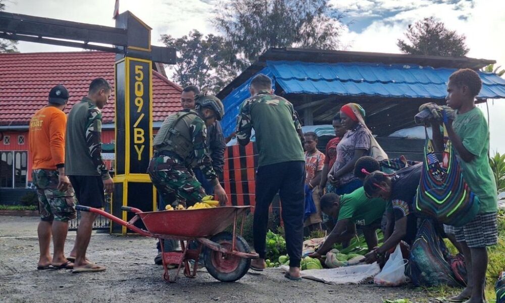 Pendiv2 – Satgas Pamtas Mobile Yonif 509/BY/9/2 Kostrad melakukan kegiatan memborong hasil bumi masyarakat di Kampung Mamba melewati Pos Mamba yang bertujuan untuk meningkatkan kesejahteraan dan perekonomian masyarakat setempat. Minggu (21/04/2024).