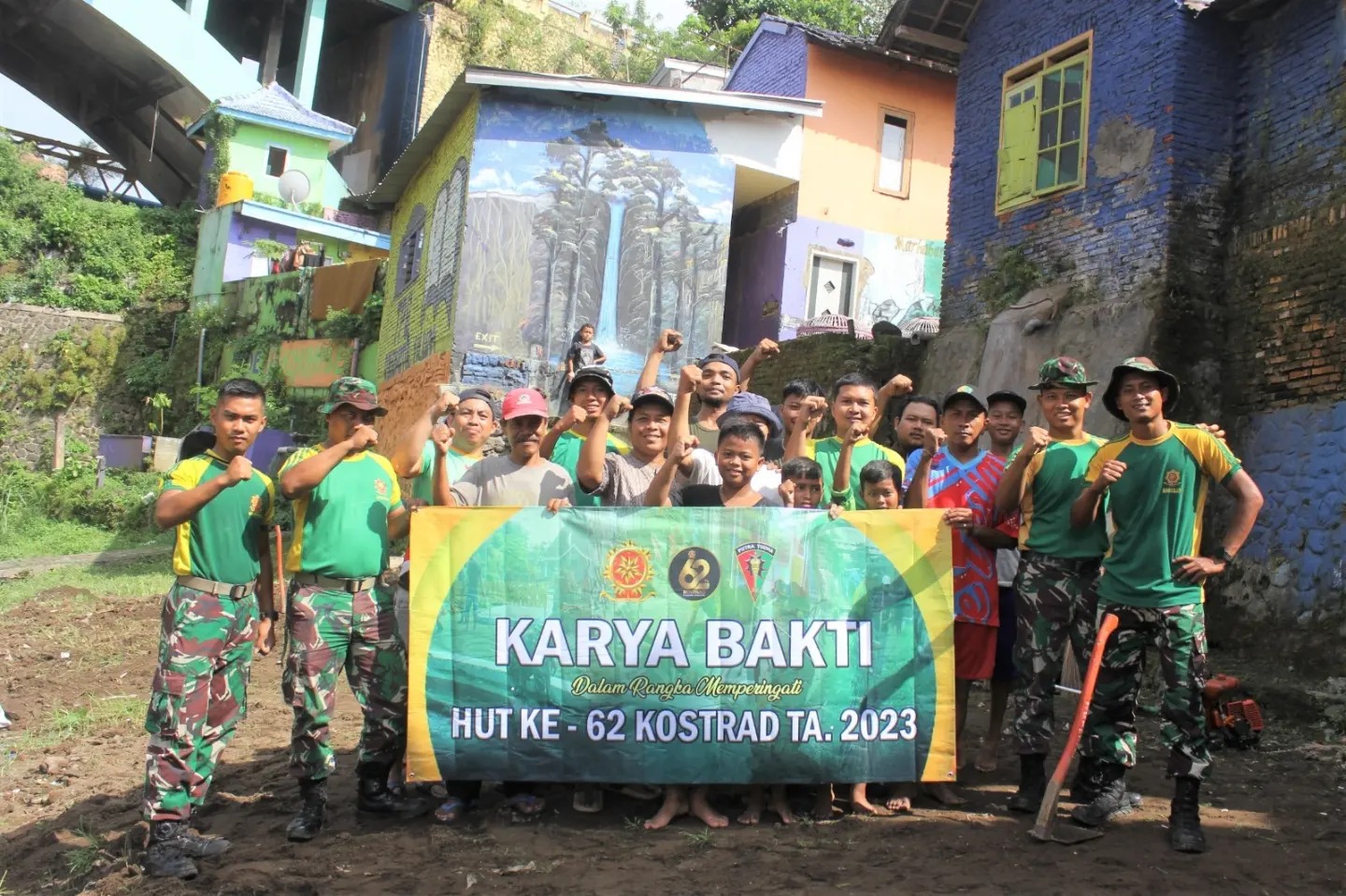 Pendiv2 – Prajurit Resimenarmed 2/PY/2 Kostrad melaksanakan Karya Bhakti dalam rangka HUT KOSTRAD ke 62 guna membantu Masyarakat Membersihkan Daerah sekitar Kampung Tridi Kelurahan Ksatrian Kota Malang agar terhindar Dari gejala penyakit. Sabtu (25/02/2023).