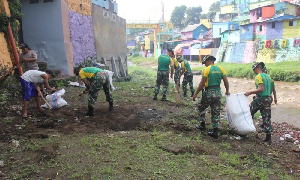 Pendiv2 – Prajurit Resimenarmed 2/PY/2 Kostrad melaksanakan Karya Bhakti dalam rangka HUT KOSTRAD ke 62 guna membantu Masyarakat Membersihkan Daerah sekitar Kampung Tridi Kelurahan Ksatrian Kota Malang agar terhindar Dari gejala penyakit. Sabtu (25/02/2023).