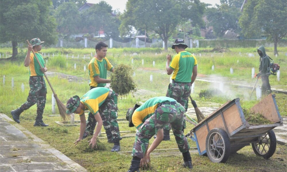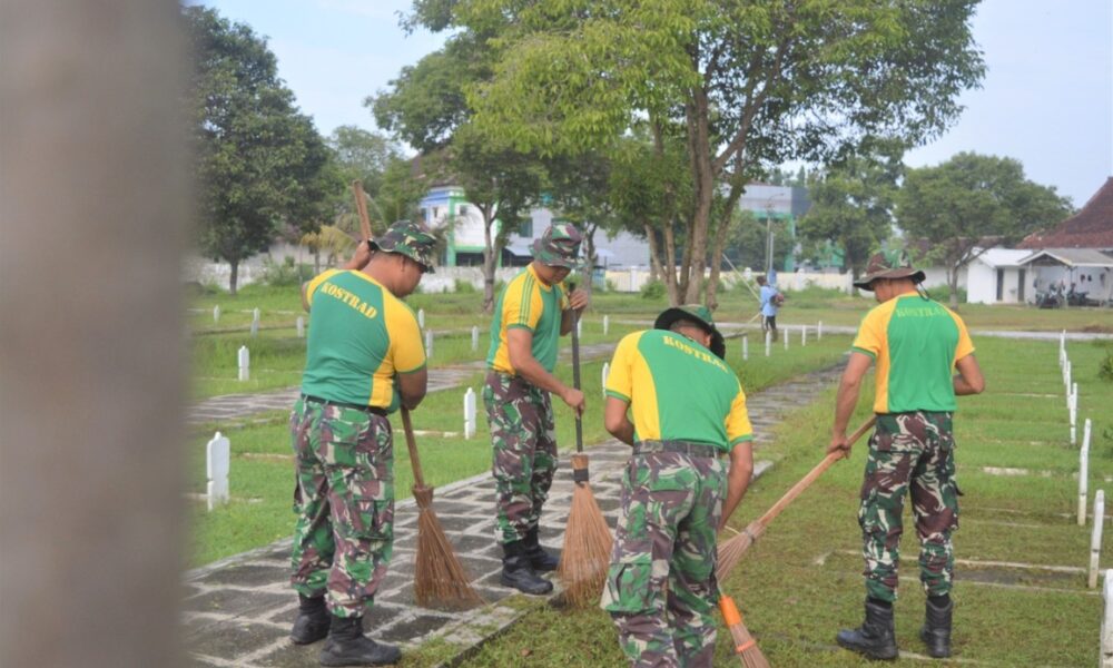 Pendiv2 – Prajurit Brigif 9/DY/2 Kostrad Melaksanakan Karya Bakti pembersihan Taman Makam Pahlawan dalam rangka memperingati HUT Kostrad Ke-63 di TMP Kec. Patrang, Kab. Jember, Sabtu (2/3/2024).