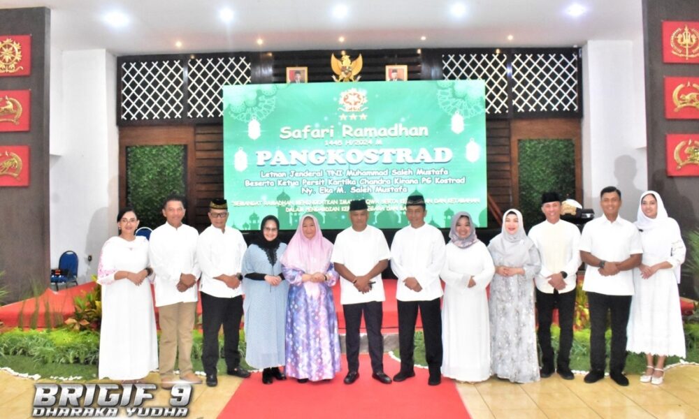 Pendiv2 – Danbrigif 9/DY/2 Kostrad, Letkol Inf Dr. La Ode Muhammad Nurdin, S.Sos., M.I.Pol mendampingi Panglima Kostrad (Pangkostrad), Letjen TNI Muhammad Saleh Mustafa, Ketua Persit Kartika Chandra Kirana PG Kostrad Ibu Eka M. Saleh Mustafa, dalam rangka acara Safari Ramadan dan buka puasa bersama para Prajurit dan Persit Satjar Brigif 9/DY/2 Kostrad, bertempat di Aula Sudirman Brigif 9/DY/2 Kostrad, Patrang, Kabupaten Jember, Selasa (26/3/2024).