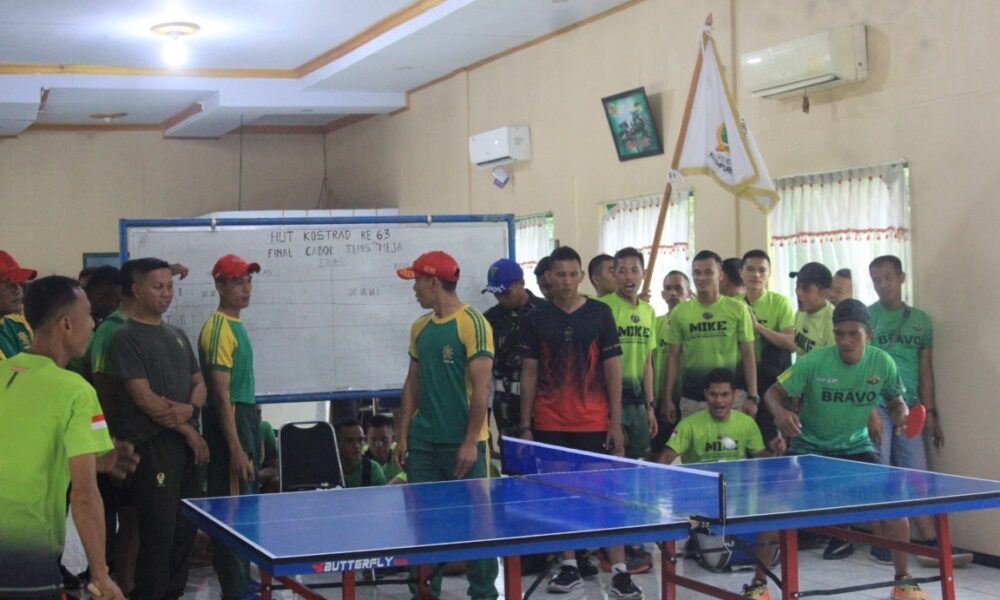 Pendiv2 – Untuk memeriahkan HUT Kostrad yang Ke-63 Tahun 2024,Yonif 501/BY/18/2 Kostrad Mengadakan Kegiatan Lomba Oraum antar kompi.Kegiatan yang diperlombakan meliputi olahraga umum (Bola Voly,Badminton,Tenis Meja,Catur,dan Gaplek). Dalam perlombaan kali ini,Komandan Batalyon yang berpasangan dengan wakil komandan Batalyon berhasil menjuarai di kecabangan Badminton dengan mengalahkan Juara tahun lalu.