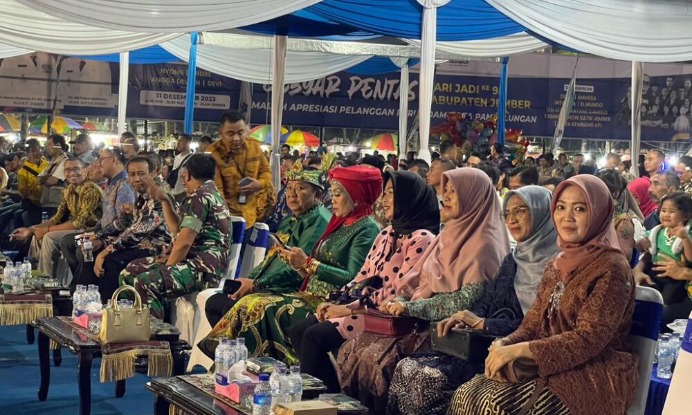 Pendiv2 – Pemerintah Kabupaten Jember, menggelar malam apresiasi pelanggan perumdan tirta pandalungan dan gebyar pentas hari jadi ke-95 Pemerintah Kabupaten Jember yang dihadiri Oleh Danbrigif 9/DY/2 Kostrad yang bertempat di Alun – alun kota Jember. Minggu (31/12/2023).