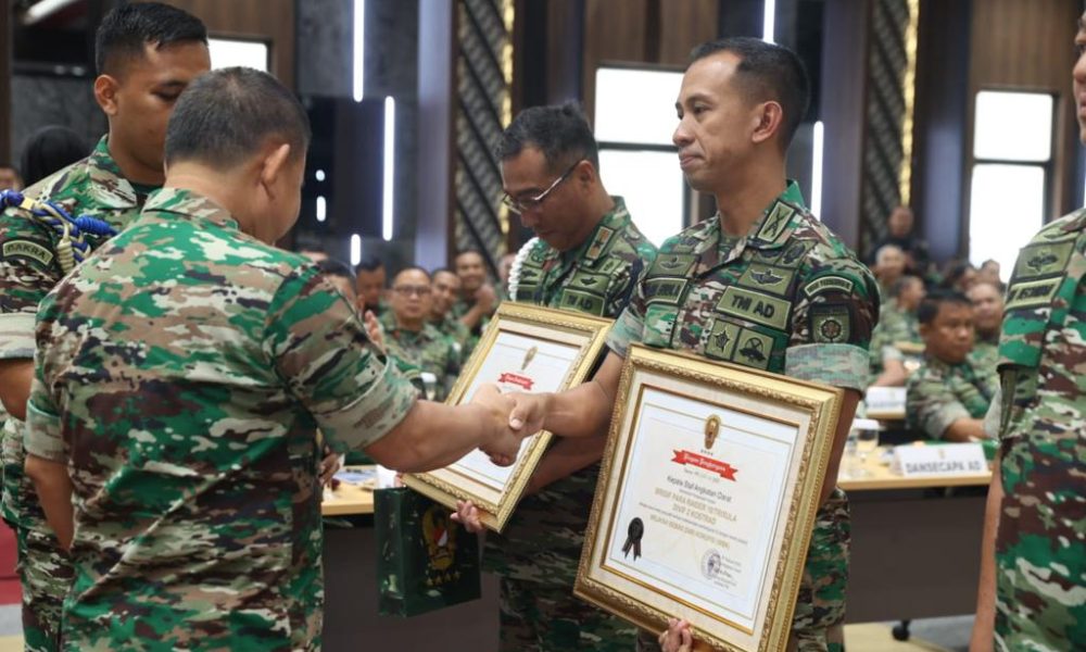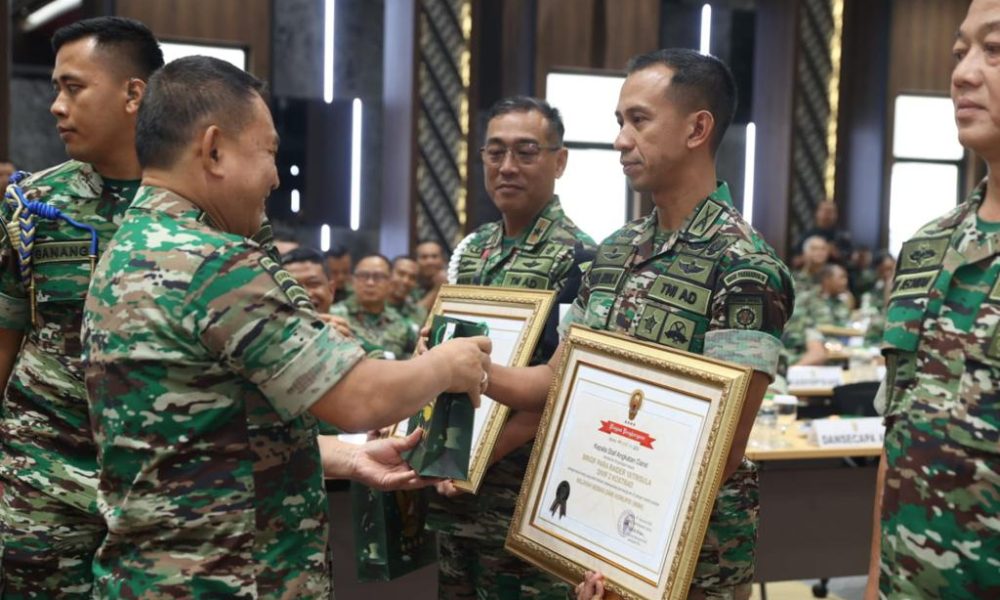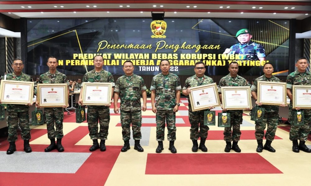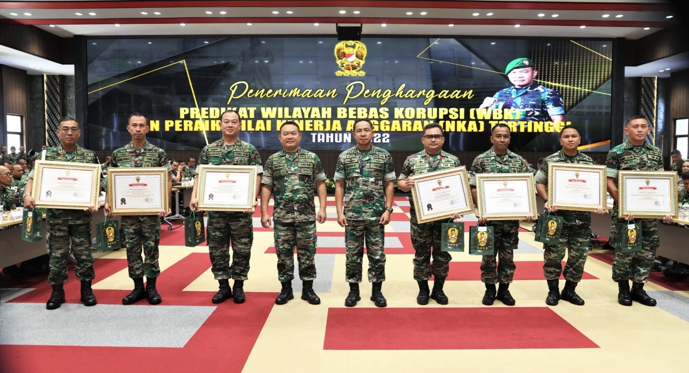 Pendiv2 – Kasad Jenderal TNI Dudung Abdurachman menyerahkan penghargaan kepada Brigif Para Raider 18/Trisula/18/2 Kostrad atas pencapaianmya sebagai salah satu Satker TNI AD yang meraih predikat WBK (Wilayah Bebas Korupsi) dari Kementerian PAN RB yang diterima langsung oleh Danbrigif Para Raider 18/Trisula Kolonel Inf Bagus Budi Adrianto, S.E bertepatan dengan kegiatan Rapim TNI AD, bertempat di Mabesad, Jakarta. Jumat (10/02/2023).