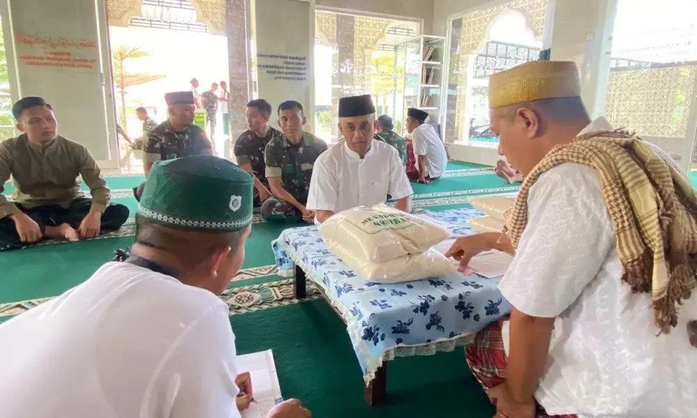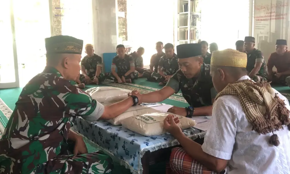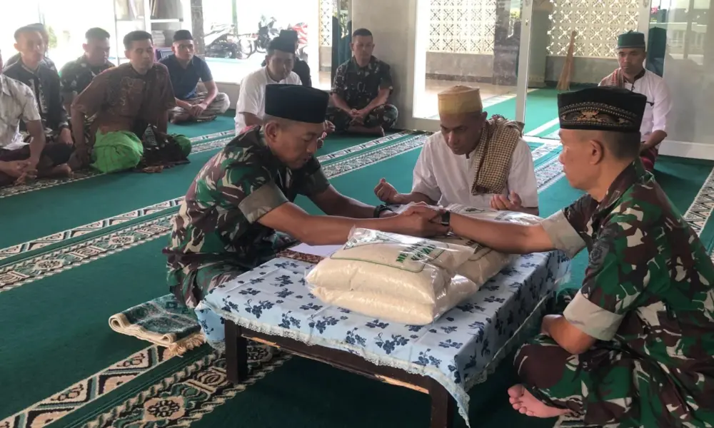 Danmenarmed 2 Kostrad Serahkan Zakat Secara Simbolis Kepada Panitia Zakat Masjid Baitul Muttaqin