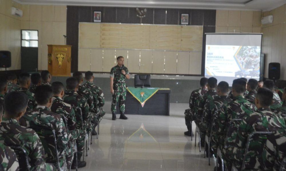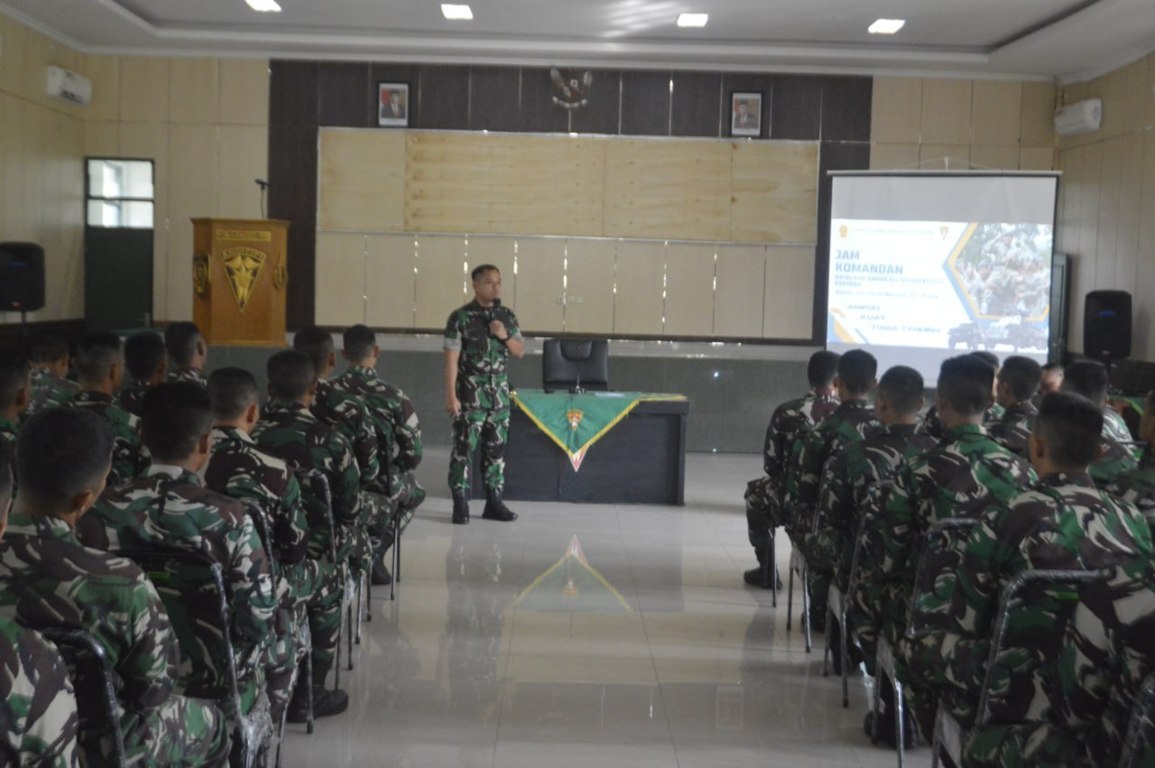 Pendiv2 – Danyonarmed 12/155/AY/2/2 Kostrad, Mayor Arm Tulus Widodo adakan jam komandan perdananya kepada seluruh anggota bertempat di Aula Batalyon, Senin (30/01/2023).