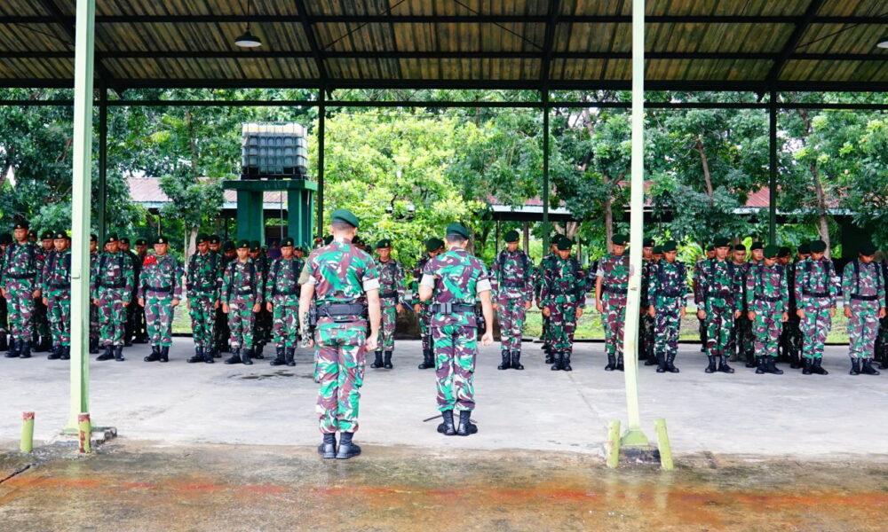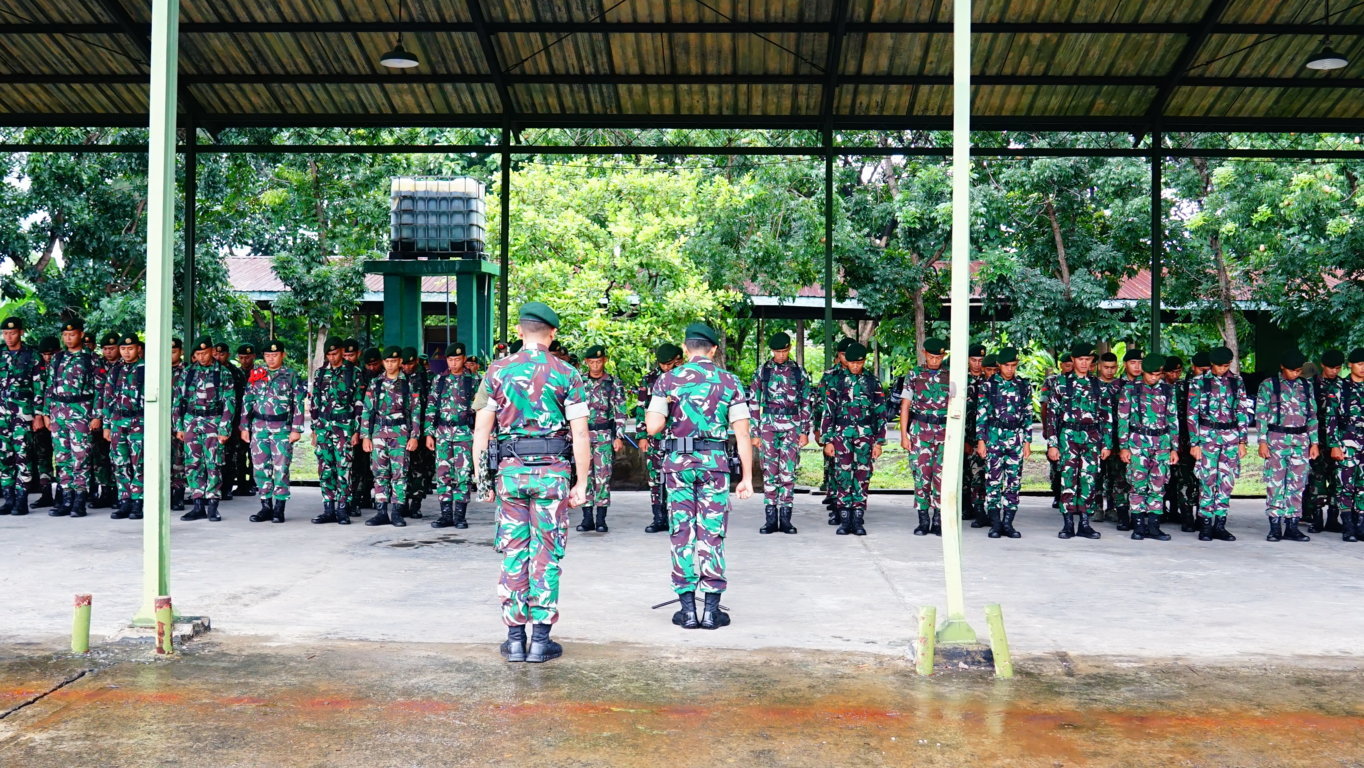 Pendiv2 – Danyonkav 8/NSW/2 Kostrad Mayor Kav Mochammad Nuril Ambiyah, S.H., M.I.P., memberikan Jam Komandan kepada seluruh prajurit Yonkav 8/NSW/2 Kostrad yang bertempat di garasi Tank Scorpion Kompi 83, Pasuruan. Rabu (13/03/2024).