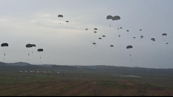 Latihan penerjunan ini menggunakan dua pesawat angkut berat C-130 Hercules. Pesawat A-1328 dari Skadron Udara 32 Malang dan pesawat A-1318 dari Skadron Udara 31 Halim Perdanakusuma, membawa ratusan peterjun.