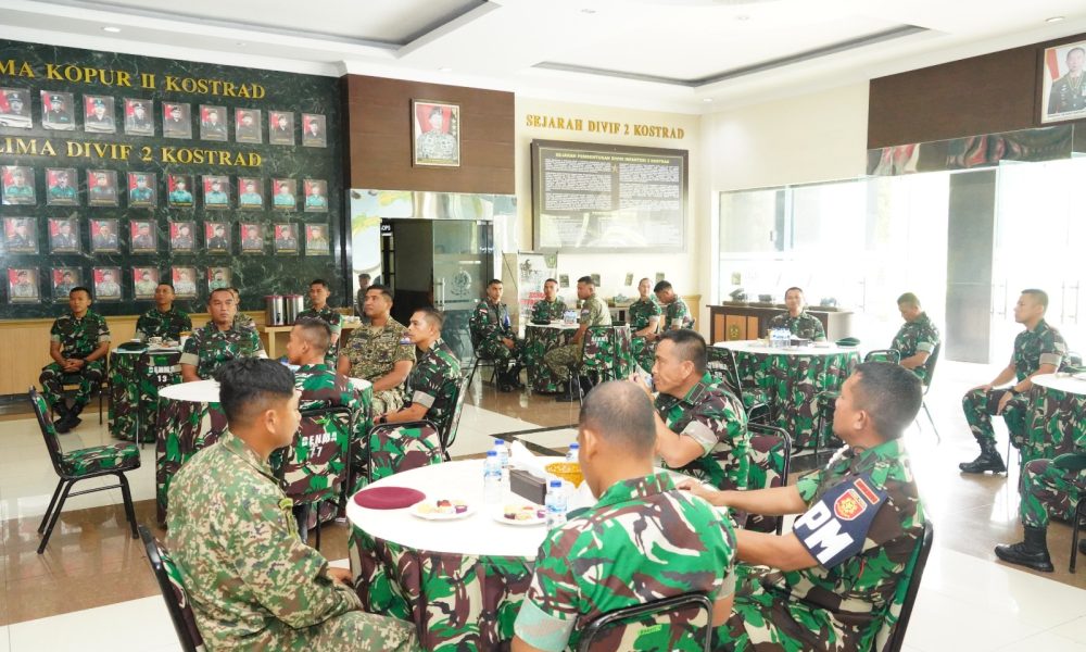 Pendiv2 – Divif 2 Kostrad menerima kunjungan kehormatan dari Tentara Diraja Malaysia (TDM) dalam rangka Latihan Bersama Linud Malindo-8 tahun 2025. Kegiatan ini menjadi simbol eratnya hubungan bilateral dan semangat sinergi militer antara Indonesia dan Malaysia. Latihan ini akan berlangsung selama 2 minggu kedepan berbasis di MaYonif 503/Mayangkara Mojokerto. Malang (Kamis 18 September 2025).