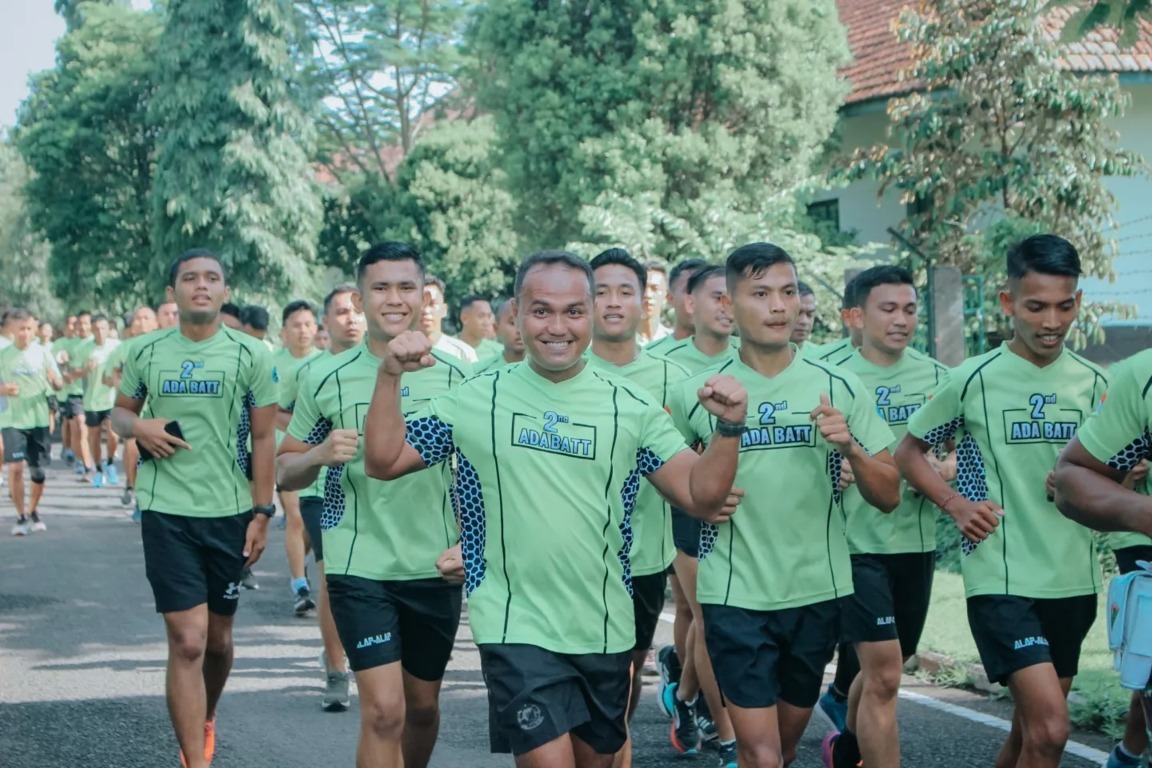 Komandan Batalyon Arhanud 2 Kostrad Letkol Arh Luthfi Novriadi, S.E., S.Sos., M.Han., M.Sc. memimpin langsung lari sejauh 11,5 KM dengan rute Asrama – Sawojajar – Bunul – Lapangan Rampal dan kembali ke Asrama.