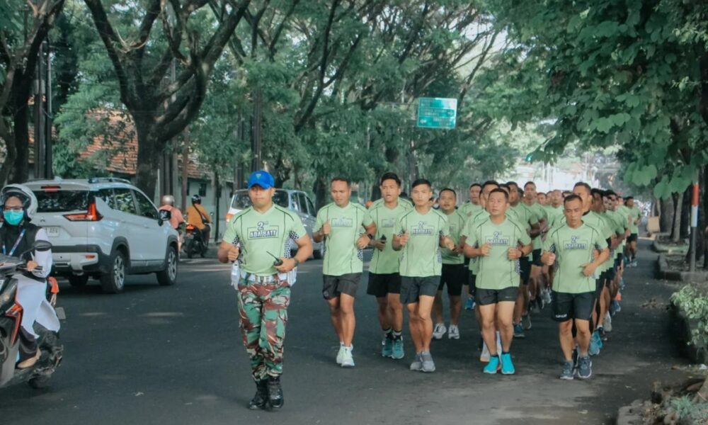 Jaga Kebugaran Tubuh, Prajurit Yonarhanud 2 Kostrad Laksanakan Lari Rute Kota