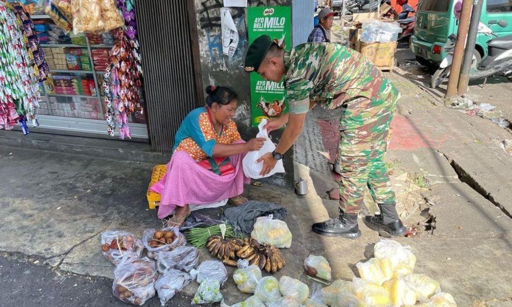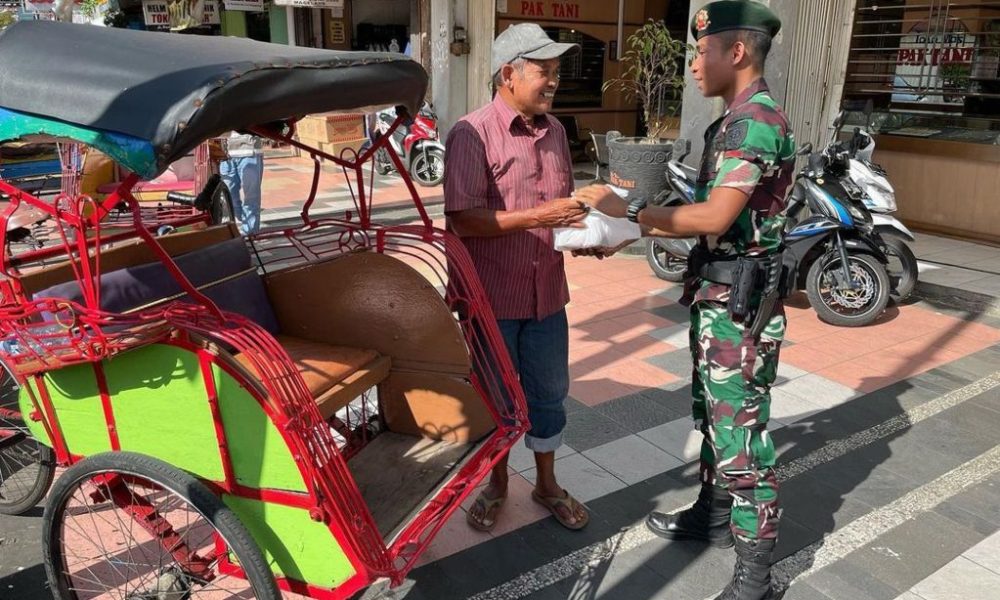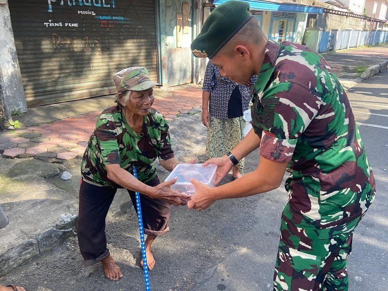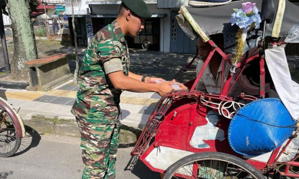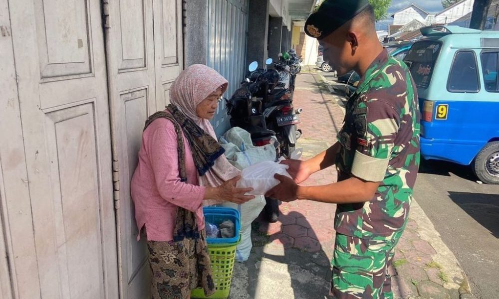 Pendiv2 – Wujud kepedulian meringankan beban warga daerah binaan dan mewujudkan kepedulian terhadap sesama, Prajurit Yonarmed 11/76/GG/2/2 Kostrad membagikan daging kepada masyarakat di jalan raya alun-alun Kota Magelang, Jawa Tengah, Jum’at (13/01/2023).