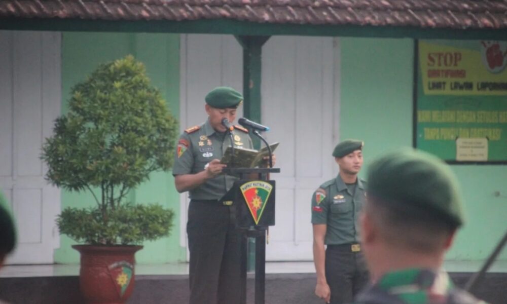 Pendiv2 – Pada pagi hari ini tanggal 17 April para prajurit satuan jajaran Divisi Infanteri 2 Kostrad kota malang melaksanakan upacara bendera yang diikuti oleh seluruh prajurit dari 3 satuan yakni Menarmed 2/PY/2 Kostrad, Yonarhanud 2/ABW/2 Kostrad, dan Yonbekang 2/MWJ/2 Kostrad bertempat di Lapangan Upacara Yonbekang 2/MWJ/2 Kostrad. Rabu (17/04/2024).