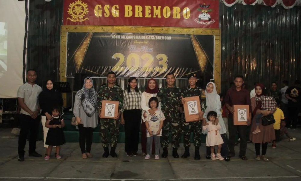 Pendiv2 – Komandan Yonif (Danyonif) Mekanis Raider 413/Bremoro/6/2 Kostrad Letkol Inf Bagus Setyawan menyambut tahun baru 2023 bersama seluruh keluarga besar Yonif Mekanis Raider 413/Bremoro. Minggu (1/1/2023).