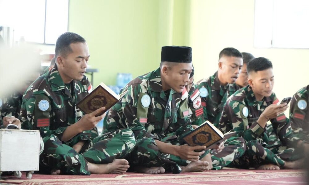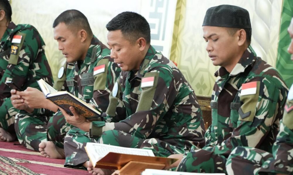 Pendiv2 – Lantunan Ayat Suci Al-Qur’an dibacakan dengan penuh ke khusyukan oleh para pasukan satgas Yonmek TNI Konga XXIII-R/UNIFIL di Masjid As Salam Adshit Al Qusayr, Lebanon Selatan (29/3/2024).