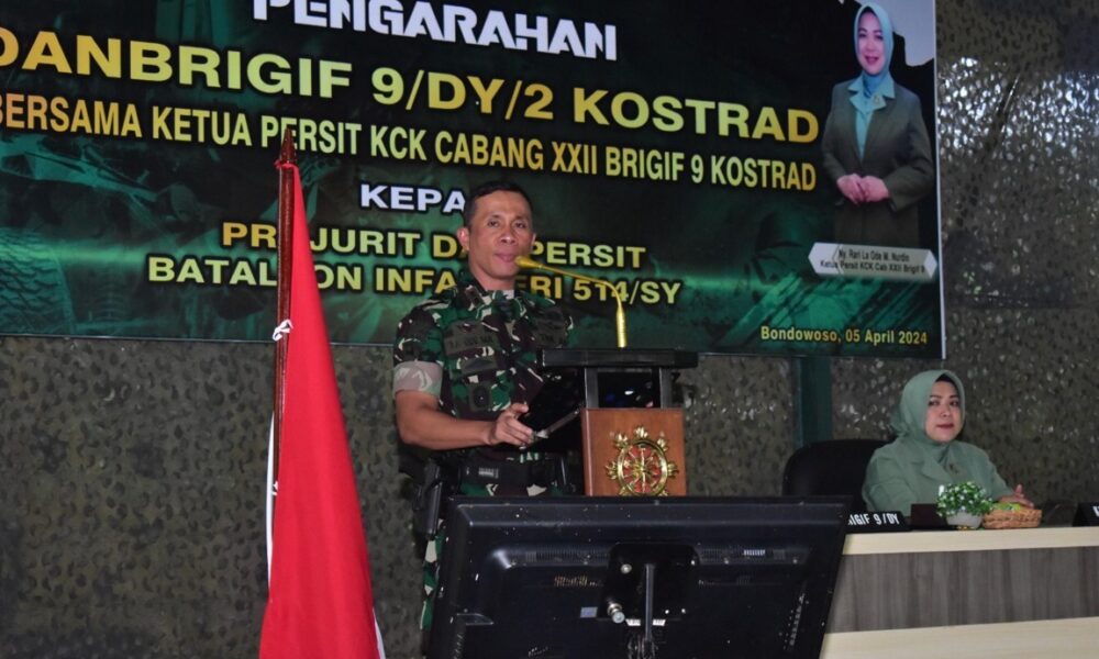 Pendiv2 – Danbrigif 9/DY/2 Kostrad, Letkol Inf Dr. La Ode Muhammad Nurdin, S.Sos., M.I.Pol., didampingi Ibu Ketua Kartika Chandra Kirana Cabang XII Brigif 9 Kostrad, Ny Rari La Ode Muhammad Nurdin Melaksanakan Kunjungan Kerja di Markas Yonif 514/SY/9/2 Kostrad, Kec. Curahdami, Kab. Bondowoso, Jumat (05/04/2024).