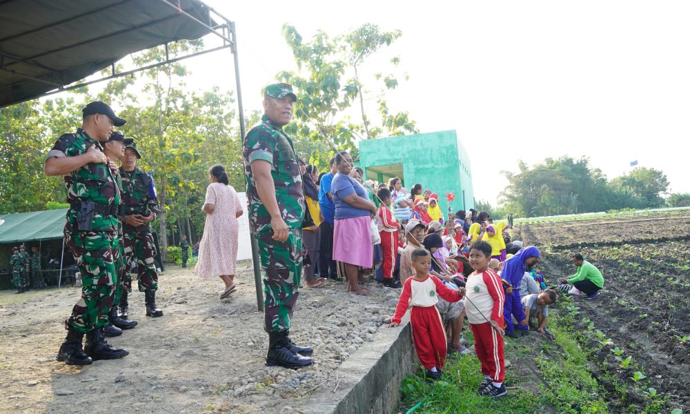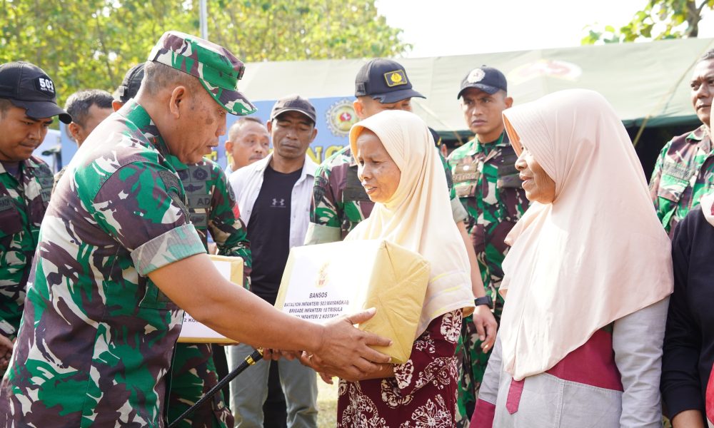 Di akhir kegiatan, para prajurit mengulurkan tangannya melalui pembagian sembako kepada warga sekitar, menyiratkan bahwa kekuatan sejati juga terletak dalam keikhlasan memberi bantuan kepada rakyat.