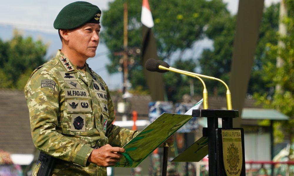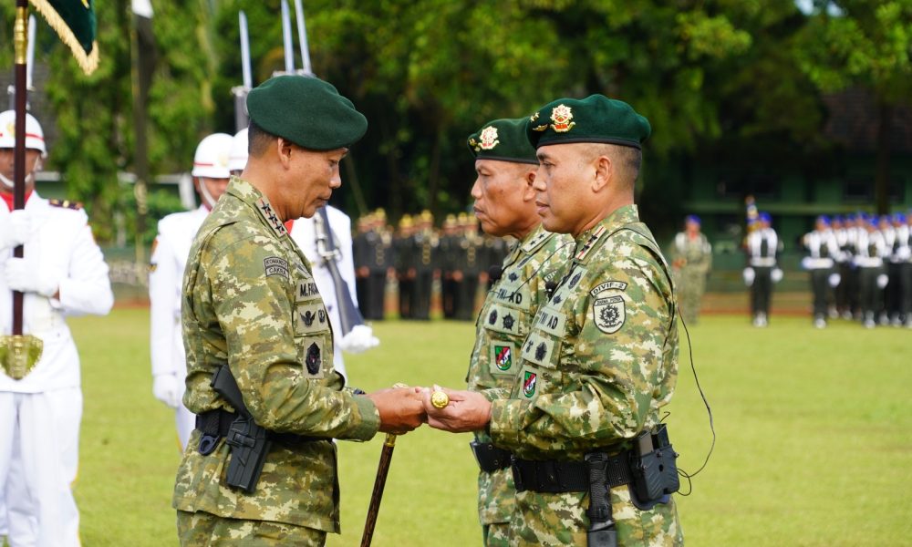 Pendiv2 – Panglima Kostrad Letnan Jenderal TNI Mohammad Fadjar, MPICT. memimpin langsung upacara Serah Terima Jabatan (Sertijab) Panglima Divisi Infanteri 2 Kostrad dari Mayjen TNI Susilo kepada Mayjen TNI Primadi Saiful Sulun, S.Sos., M.Si. Kegiatan berlangsung khidmat dan penuh makna di Markas Divisi Infanteri 2 Kostrad, Sabtu (10/1/2025).