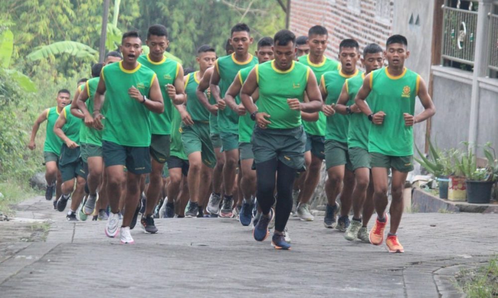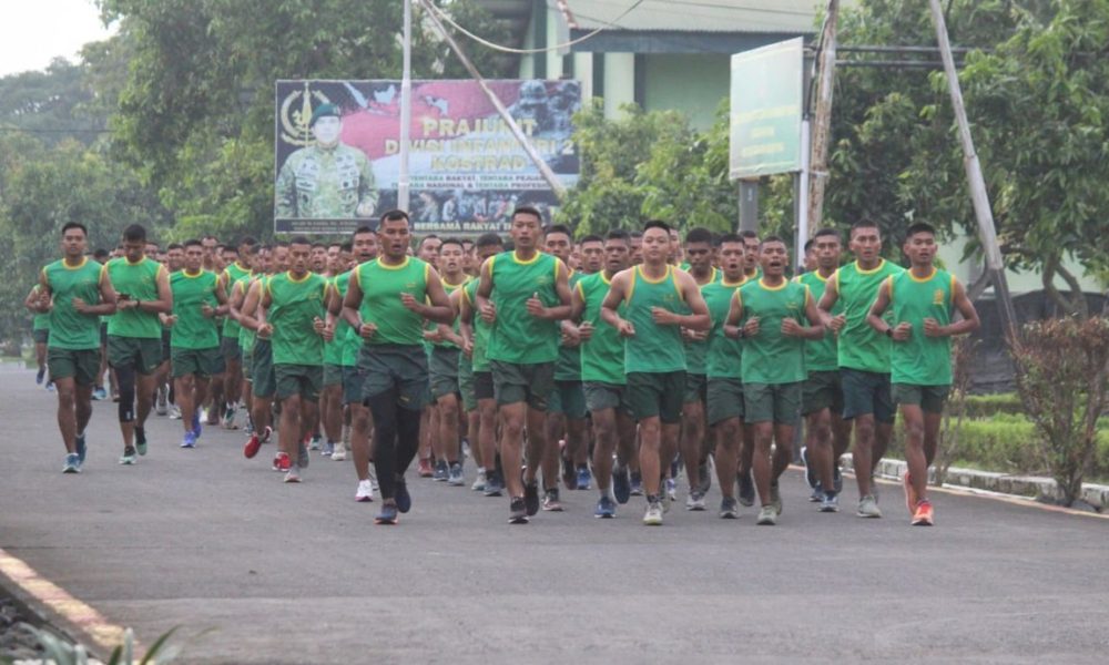 Pendiv2 – Prajurit Narasinga Wiratama mengawali tahun 2023 dengan olahraga lari bersama untuk menjaga kondisi tubuh agar tetap fit dan bugar, mengelilingi rute luar sekitar lingkungan desa binaan, Selasa (2/1/2023).