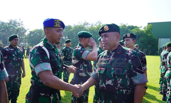 Pendiv2 – Dandenpal Divif 2 Kostrad, Letkol Cpl Usman Santoso, S.E., M. Han. memberikan pengarahan kepada Prajurit Denpal Divif 2 Kostrad di Garasi Belakang Denpal Divif...