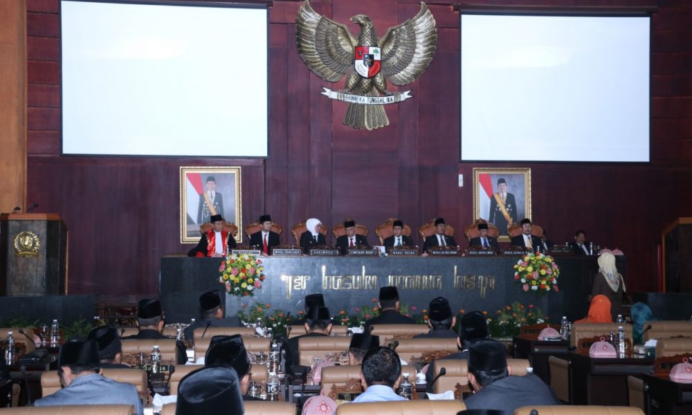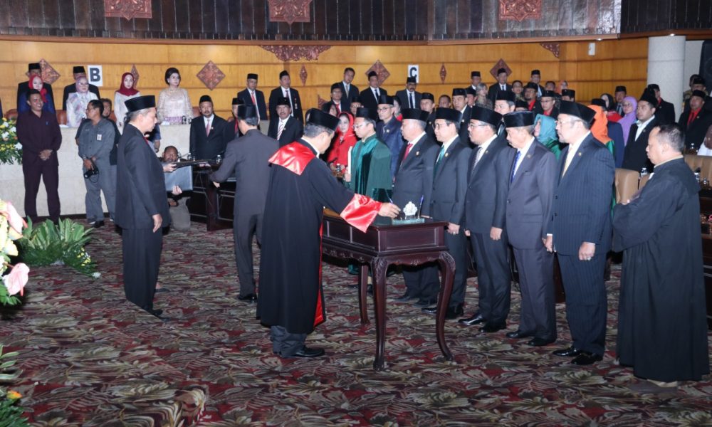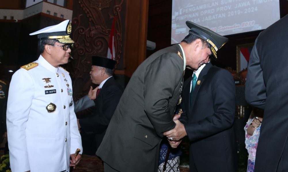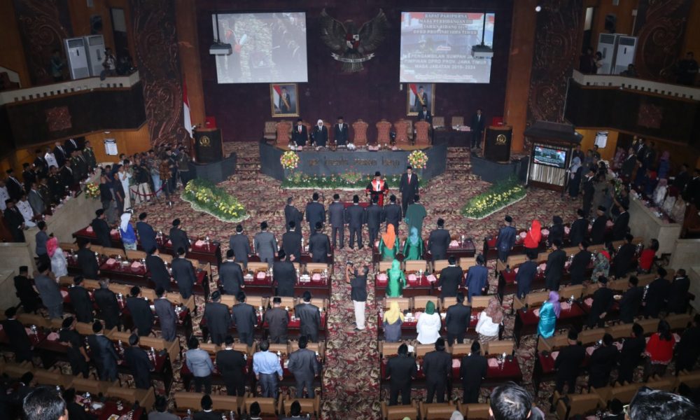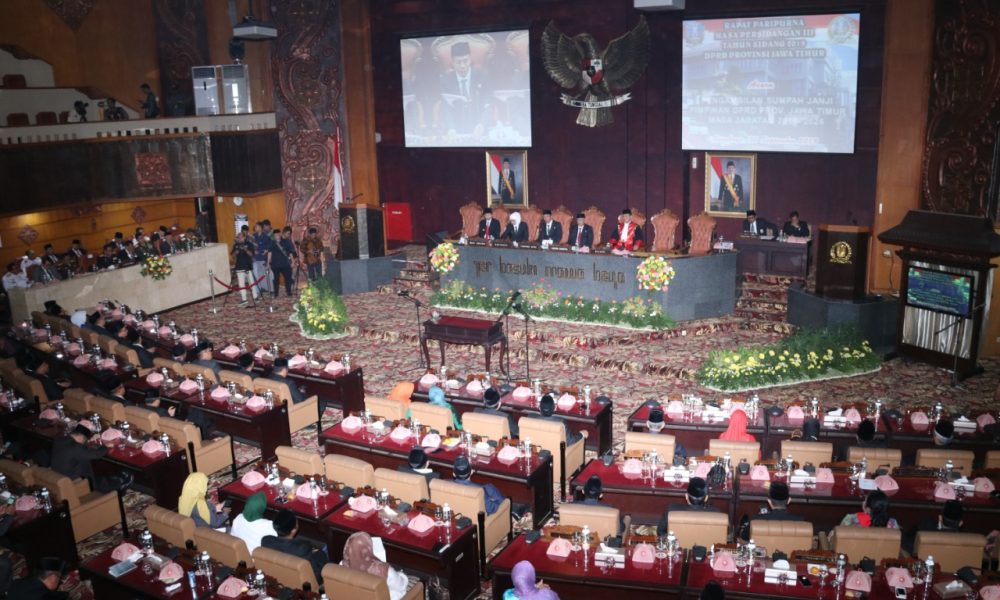 Pendiv2 – DPRD Provinsi Jatim menggelar Rapat Paripurna dengan agenda utama pengambilan sumpah janji jabatan Pimpinan DPRD Provinsi Jatim Masa Jabatan 2019-2024 yang dibimbing oleh Ketua Pengadilan Tinggi Jawa Timur yang diikrarkan di ruang paripurna Gedung DPRD Jatim. Senin (30/9).
