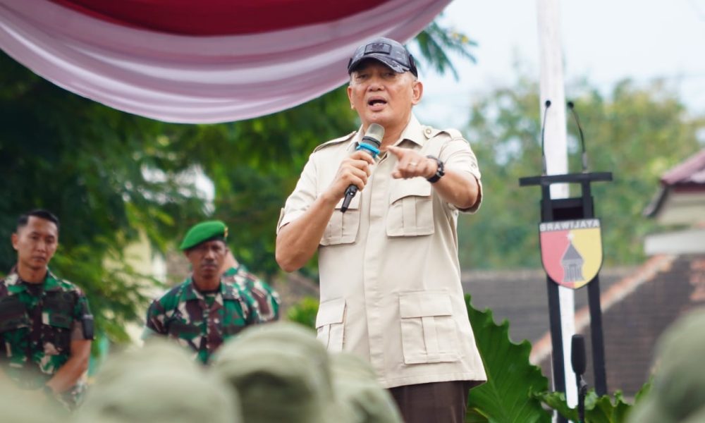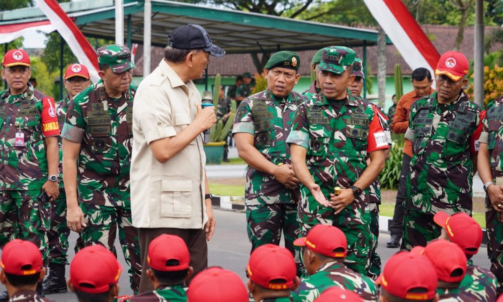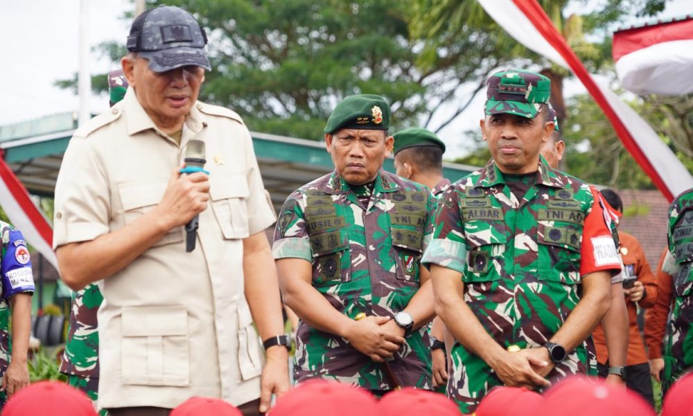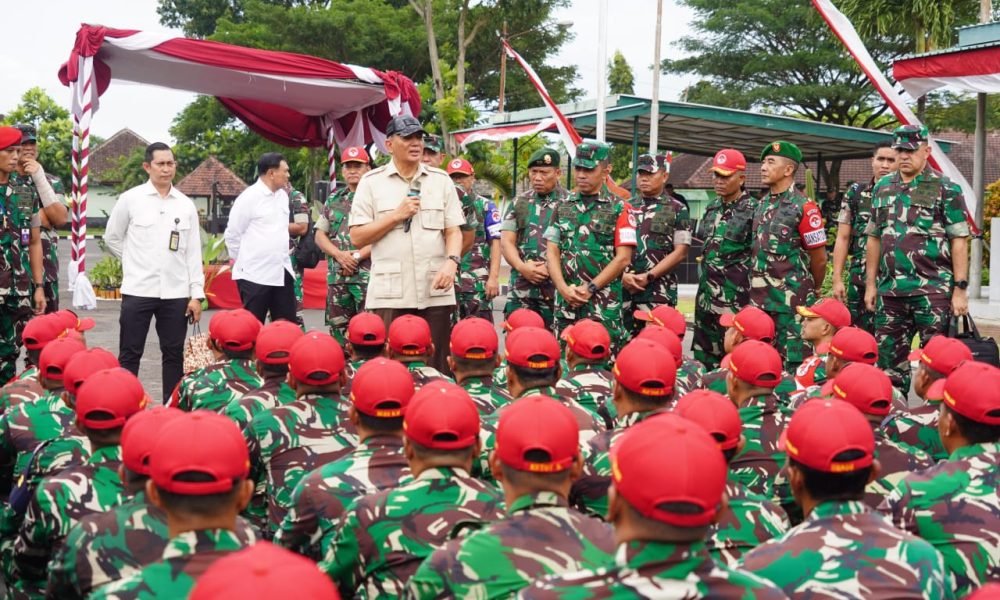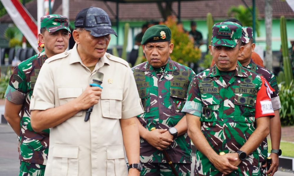 Pendiv2 – Suasana penuh semangat terpancar saat Panglima Divisi Infanteri 2 Kostrad mendampingi Menteri Pertahanan dalam kunjungan ke latihan Sarjana Penggerak Pembangunan Indonesia (SPPI) di Dodikjur Rindam V/Brawijaya. (Malang, 26 Mei 2025).
