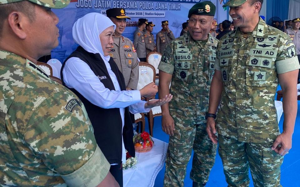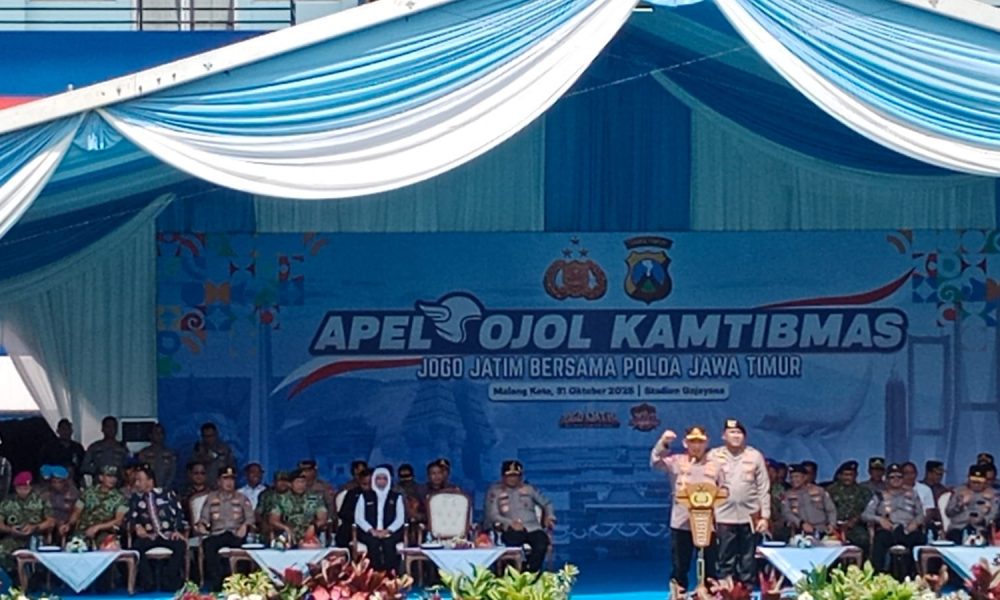 Pendiv2 — Stadion Gajayana menjadi saksi kebersamaan lintas institusi dalam menjaga stabilitas keamanan Jawa Timur. Dalam kegiatan Apel Ojol Kamtibmas Jaga Jawa Timur yang dipimpin langsung oleh Kapolri Jenderal Polisi Drs. Listyo Sigit Prabowo, M.Si., turut hadir Panglima Divisi Infanteri 2 Kostrad, Mayjen TNI Susilo, S.I.P., bersama Gubernur Jawa Timur Dr. (H.C.UA) Hj. Khofifah Indar Parawansa dan jajaran pejabat Forkopimda. (Malang, 31 Oktober 2025).