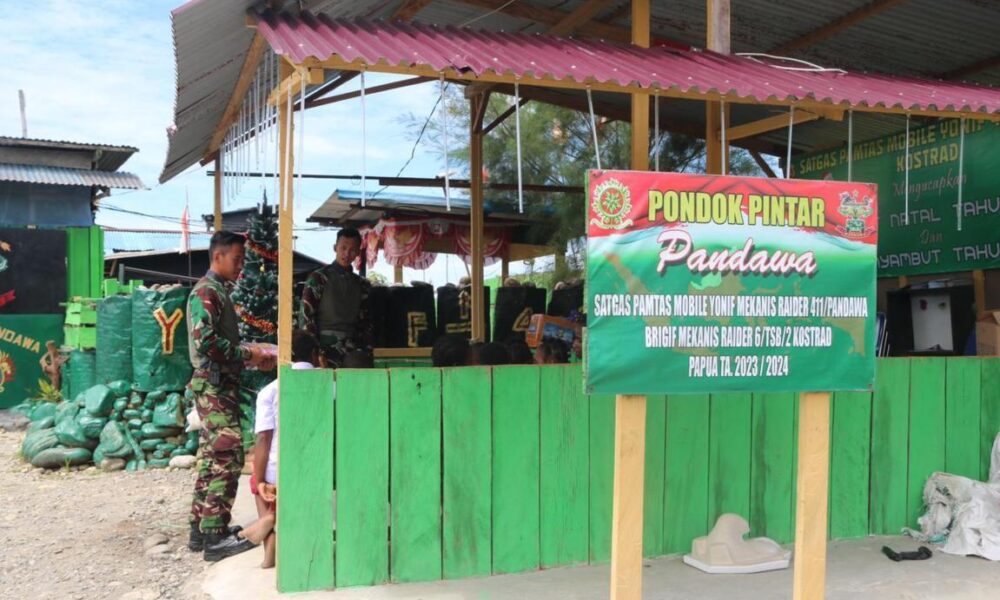 Pendiv2 – Tak pernah sepi, Pondok Pintar Pandawa Kostrad tak hanya tempat berbagi ilmu bagi anak-anak Keneyam, Pasukan Pandawa Kostrad dari Pos Kotis juga selalu berikan hadiah kejutan setiap hari bagi anak-anak yang belajar dan bermain di Pondok Pintar, Distrik Keneyam, Kabupaten Nduga, Provinsi Papua Pegunungan, Selasa, (30/1/2024).