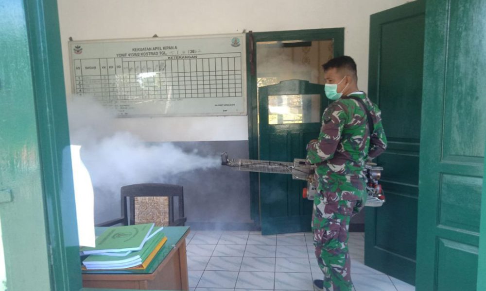Peduli Kesehatan Lingkungan, Yonif Mekanis Raider 413/Bremoro Laksanakan Fogging