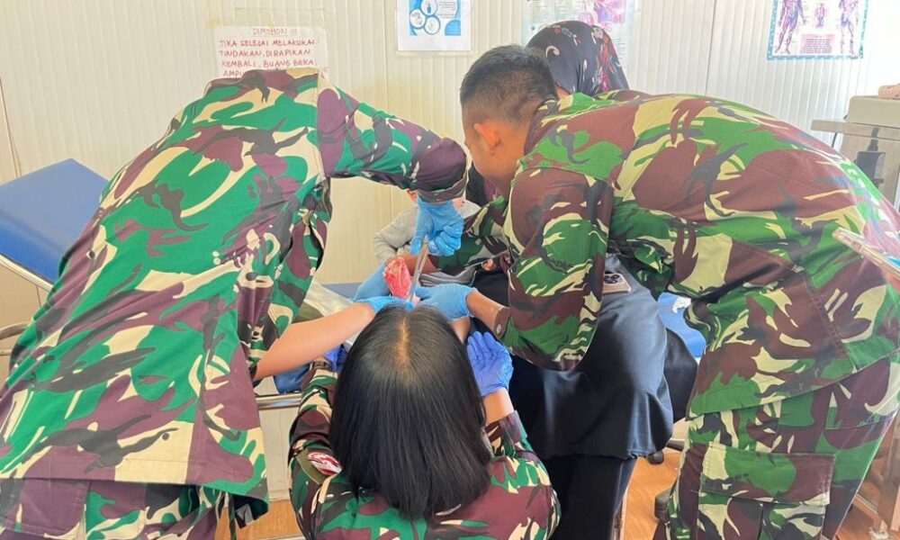 “Dalam situasi konflik saat sekarang ini, tentunya kita yang memiliki tiga orang dokter umum dan satu orang dokter gigi harus selalu siap membantu masyarakat yang sakit di wilayah sekitar kita, sehingga keberadaan kita dapat diterima dengan baik oleh masyarakat lokal disini,” terang Kolonel Inf Ragung.