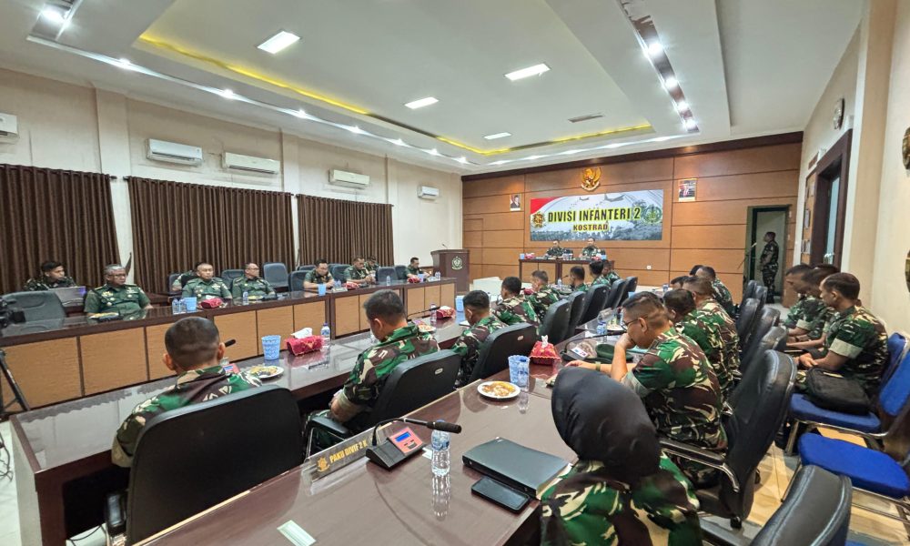 Pendiv2 – Ruang Yudha Madivif 2 Kostrad hari ini menjadi saksi momentum penting ketika Panglima Divisi Infanteri 2 Kostrad dalam hal ini diwakili oleh Irdivif 2 Kostrad Brigjen TNI Indra Heri, SE. menyambut kedatangan Tim Audit Kinerja Itjenad yang dipimpin oleh Brigjen TNI Yudi Pranoto, S.H., M.M. Kehadiran tim ini menandai dimulainya Entry Briefing di satuan jajaran Divif 2 Kostrad sebagai bagian dari program Audit Kinerja TA 2025.