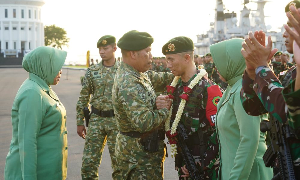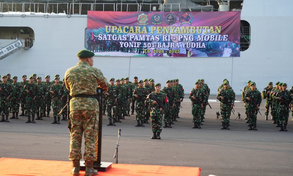Pendiv2 – Setelah menuntaskan penugasan di Papua dengan gemilang, Satgas Yonif 501 kembali ke homebase dengan membawa prestasi yang membanggakan yaitu mengajak Danyon OPM kembali kepangkuan NKRI tanpa mengangkat senjata. Kepulangan mereka disambut sangat hangat oleh Panglima Divisi Infanteri 2 Kostrad, Kasdivif 2 Kostrad beserta seluruh jajaran Komandan Satuan, sebagai bentuk apresiasi atas dedikasi, pengabdian, dan pengorbanan mereka dalam menjaga keutuhan NKRI. (Surabaya, 5 Juni 2025).
