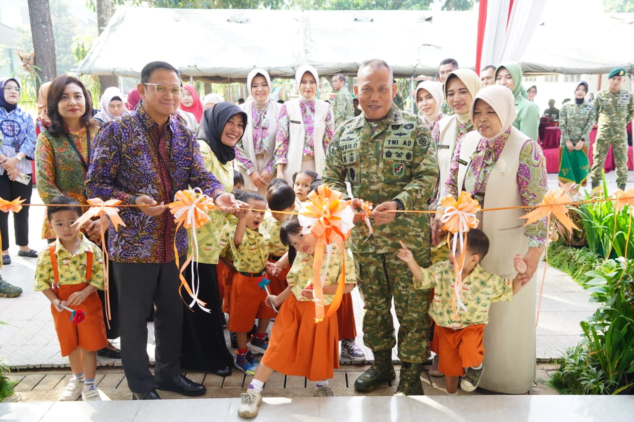 Pendiv2 – Panglima Divisi Infanteri 2 Kostrad Mayjen TNI Susilo didampingi Ibu Ketua Persit KCK Koorcab Divif 2 PG Kostrad meresmikan gedung KB PAUD Kartika IX / 22 Puri Vira Cakti yang baru di bangun di Madivif 2 Kostrad. Sabtu (13/09/2025).