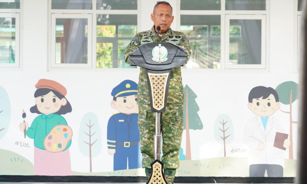 Dalam sambutannya, Panglima menuturkan pendidikan anak usia dini merupakan fondasi utama dalam membentuk karakter, budi pekerti, serta kecerdasan generasi penerus bangsa. Dengan dibangunnya gedung ini, diharapkan dapat menanamkan nilai-nilai disiplin, kebersamaan, dan cinta tanah air sejak dini kepada anak-anak kita.