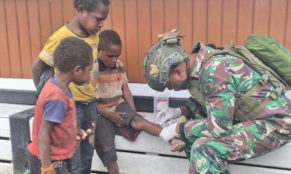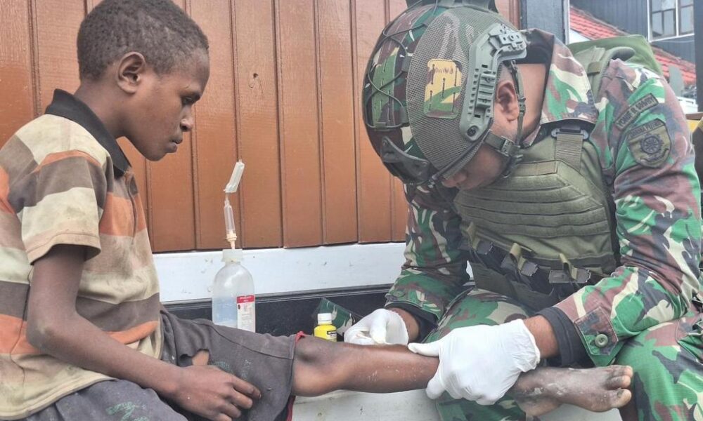 Pendiv2 – Satgas Pamtas Mobile Yonif 509/BY/9/2 Kostrad menggelar kegiatan pengobatan gratis dan jumat berkah berupa bagi makan siang untuk anak anak baru pulang sekolah dan anak anak sekitar Pos yang melintas didepan Pos Mamba. Jumat (19/04/2024).