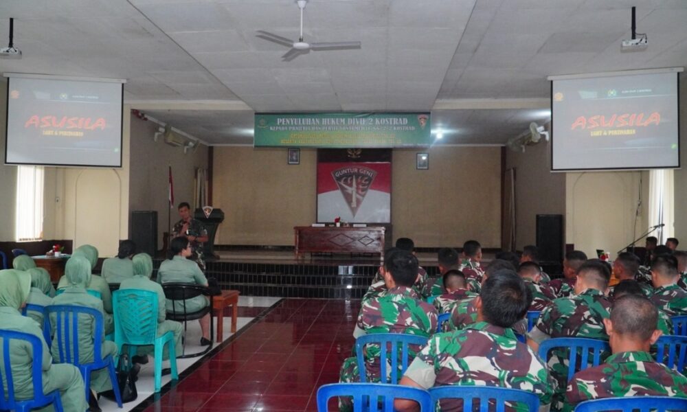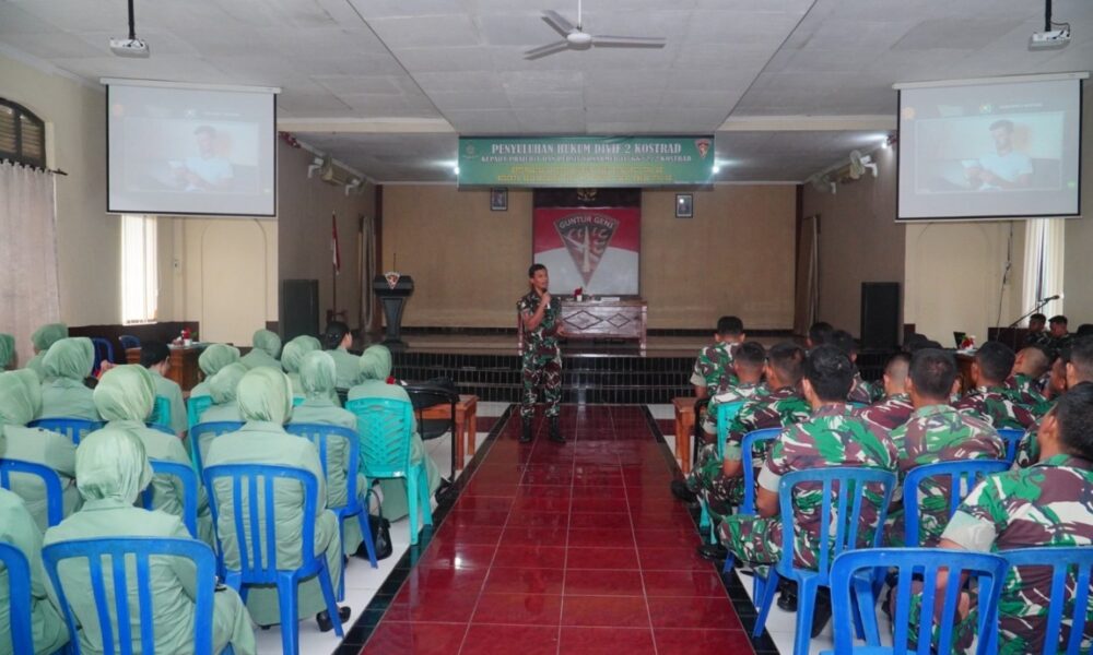Pendiv2 – Dalam rangka meningkatkan dan membekali prajurit dan Persit tentang pentingnya Hukum untuk mendukung tugas pokok TNI AD, Yonarmed 11/GG/2/2 Kostrad terima Penyuluhan Hukum dari Tim penyuluhan hukum Divif 2 yang bertempat di Aula Gedung Guntur Geni (G3), Kelurahan Gelangan, Kecamatan Magelang Tengah, Kota Magelang, Selasa (26/03/2024).