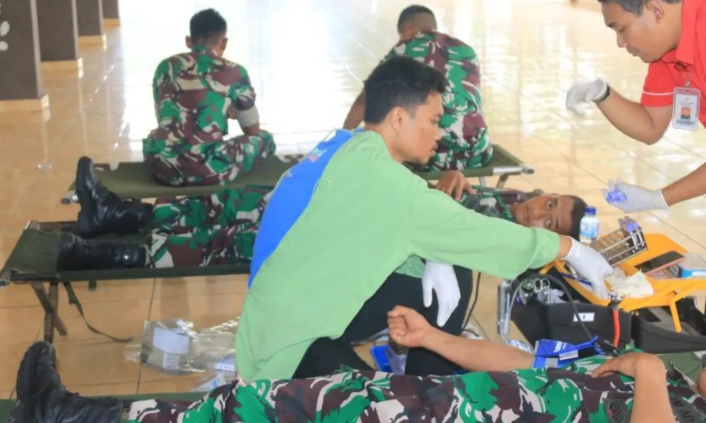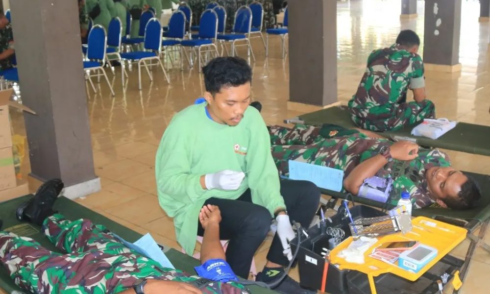 Prajurit dan Persit Yonif Raider 514 Kostrad Laksanakan Donor Darah Sambut HUT Persit Ke-77 Tahun 2023