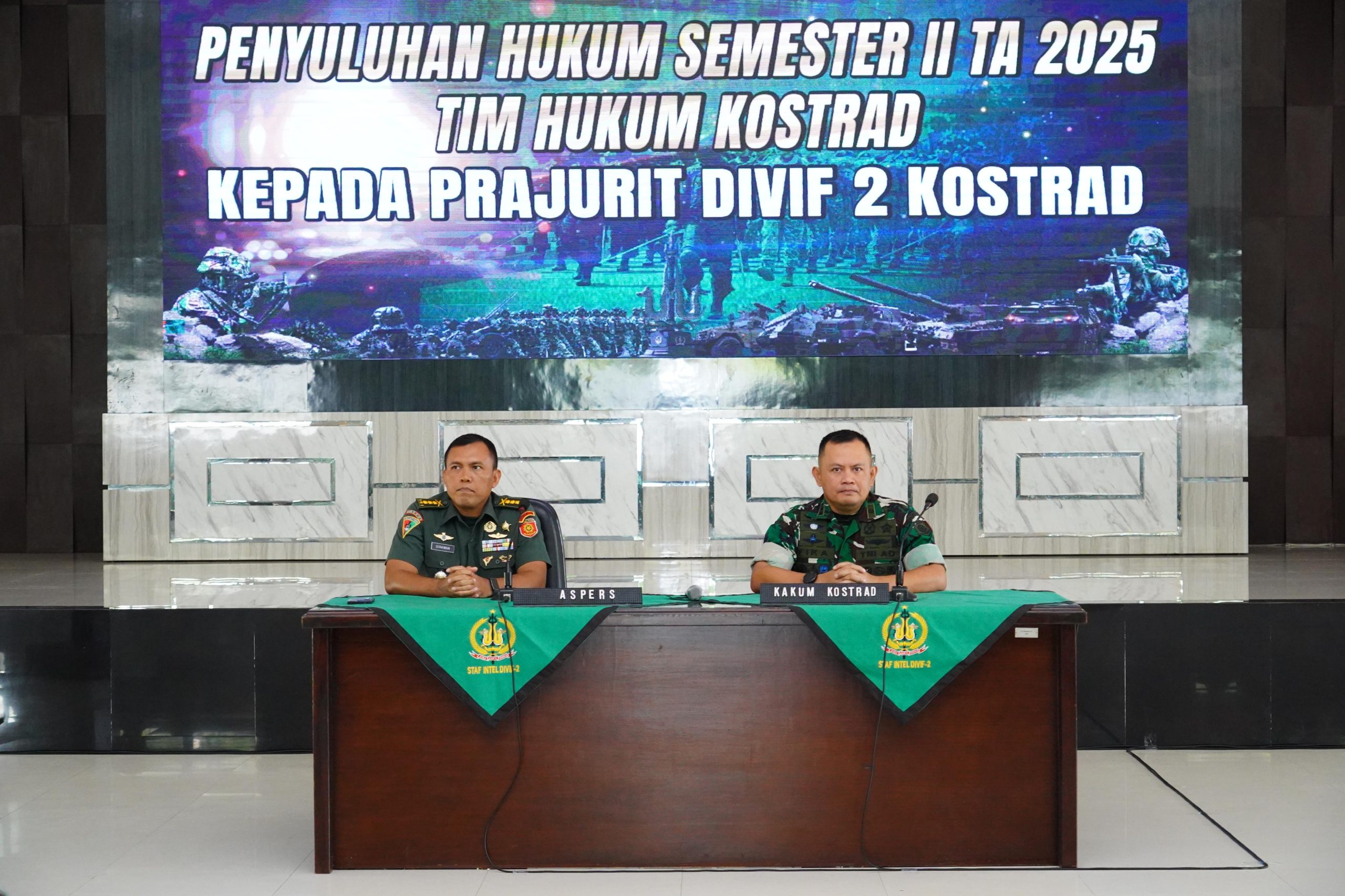 Pendiv2 — Gedung Sandoyo Divisi Infanteri 2 Kostrad berubah menjadi ruang pembelajaran hukum bagi prajurit dan Persit Divif 2 Kostrad, Rabu (15/10).