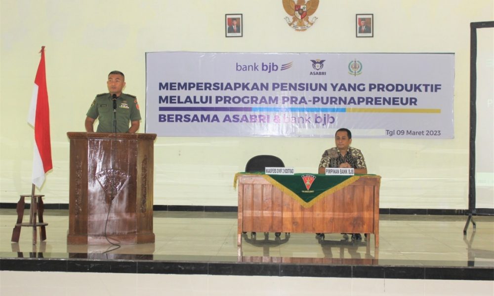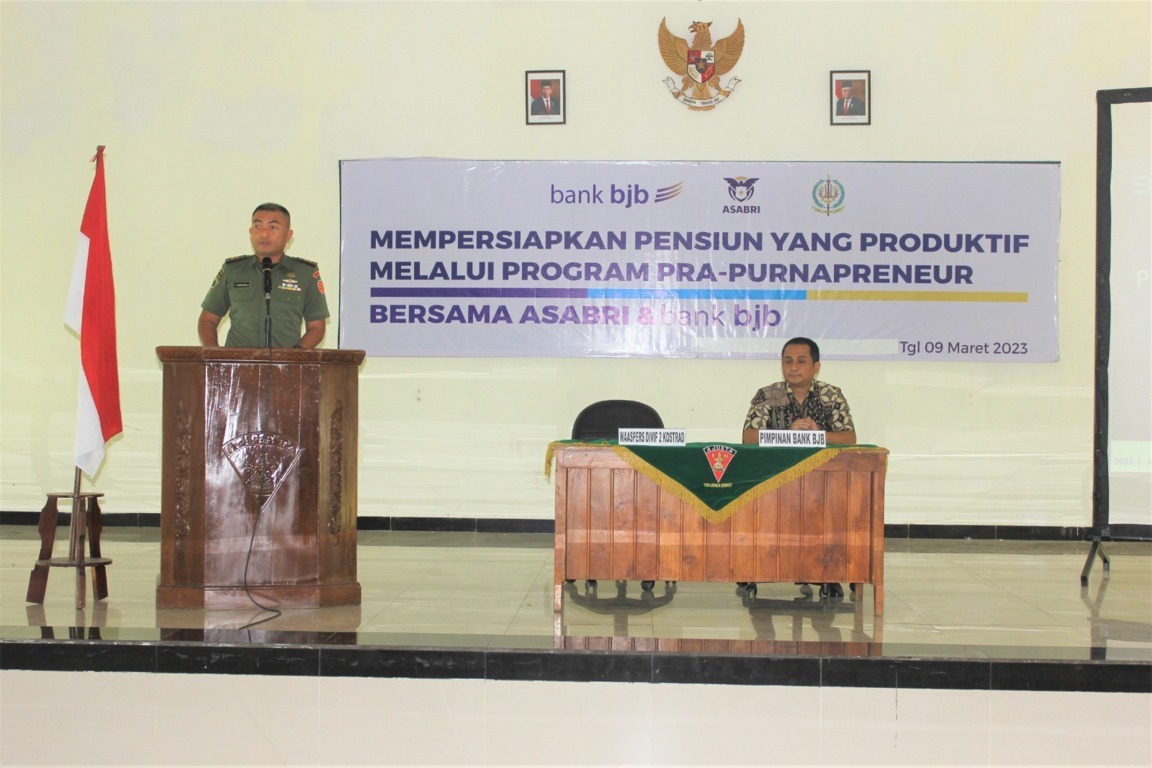 Kegiatan sosialisasi tersebut digelar oleh Satuan Divif 2 kostrad yang bekerja sama dengan Bank BJB yang bertujuan untuk memberikan wawasan/pengetahuan tentang pentingnya mempersiapkan pensiun yang produktif melalui program pra-purnapreneur.