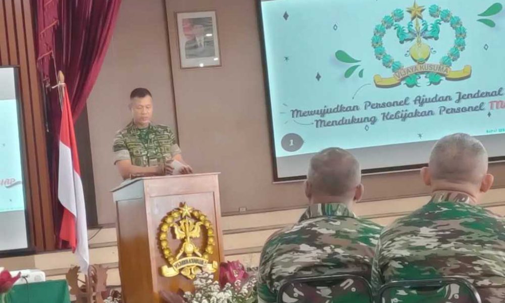 Pendiv2 – Kepala Ajudan Jenderal Divif 2 Kostrad Mayor Caj Gideon Mangosa Paonganan, S.S. menghadiri Rapat Kerja Teknis Ajudan Jenderal TA. 2023 (Rakernis Ajen) yang digelar di Gedung Gondodipuro, Direktorat Ajudan Jenderal Angkatan Darat (Ditajenad), Bandung, Jumat (24/2/2023).