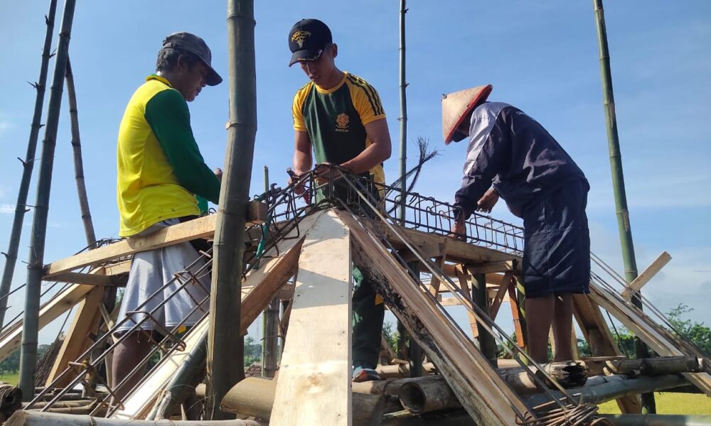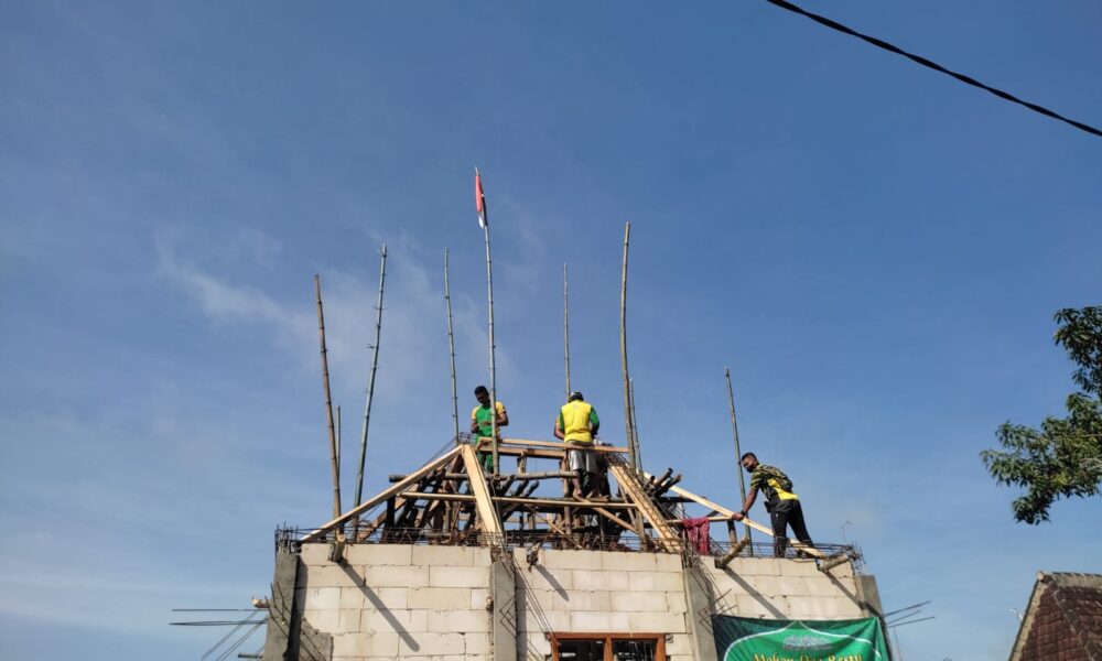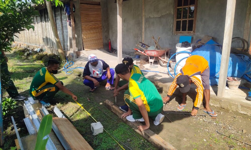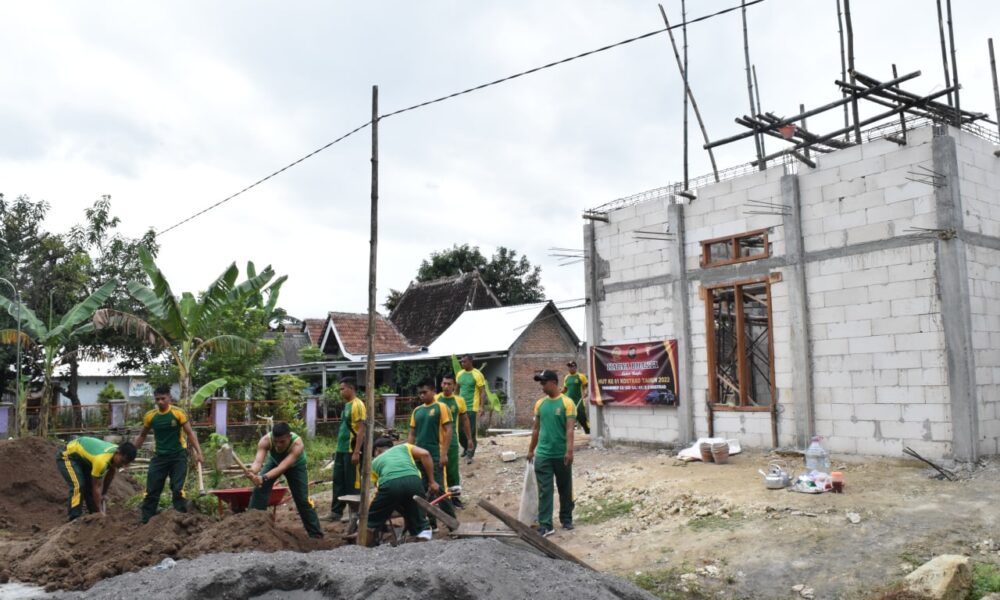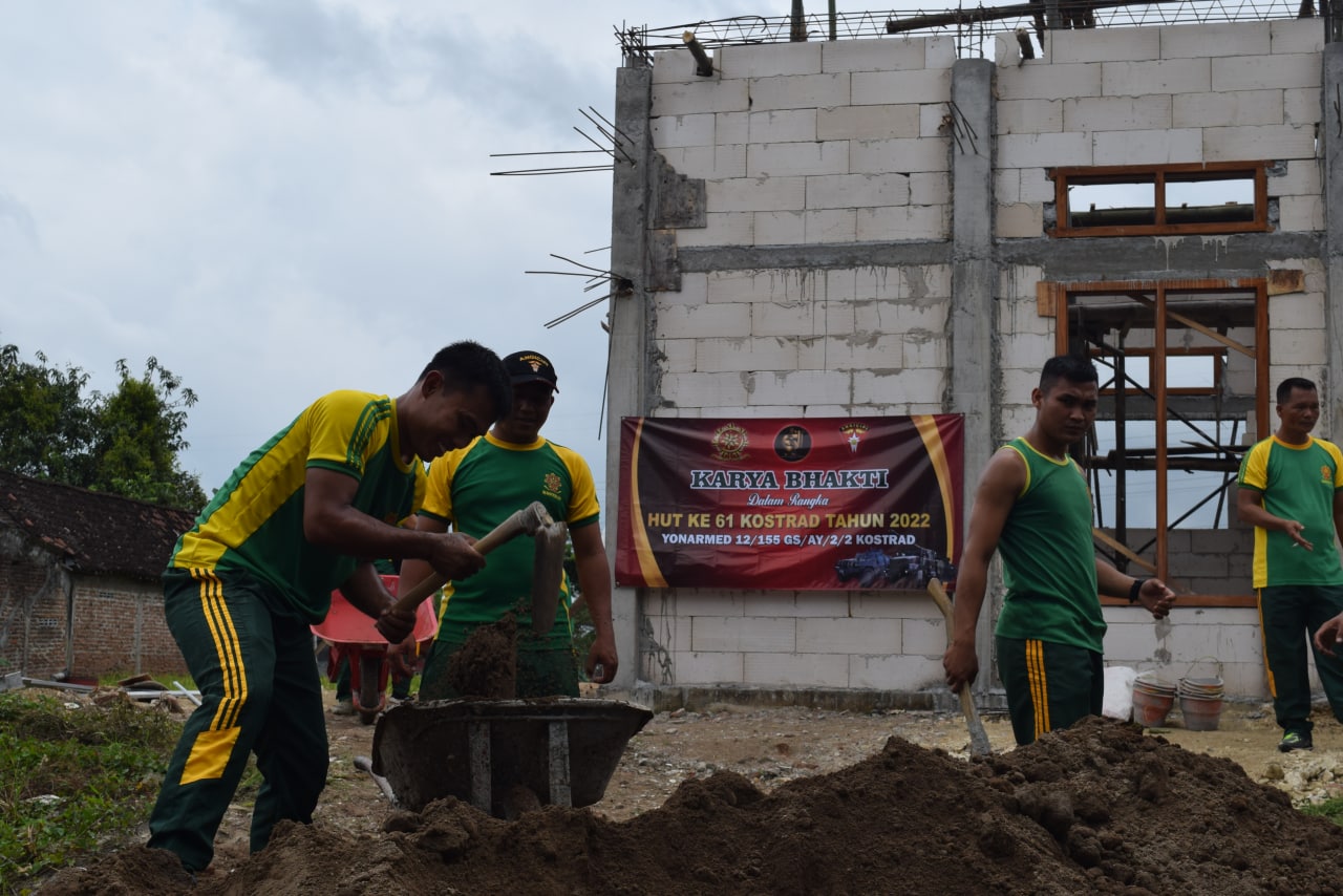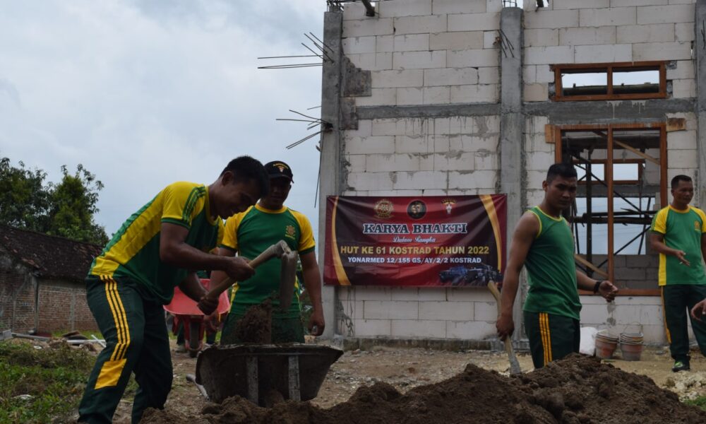 Pendiv2 – Jelang HUT Komando Cadangan Strategis Angkatan Darat (Kostrad) ke-61, Yonarmed 12/155/AY/2/2 Kostrad bekerjasama dengan masyarakat gelar karya bhakti membantu pembangunan mushola.