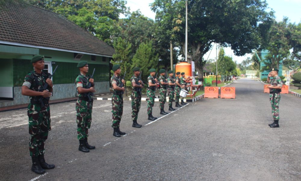 Pendiv2 – Prajurit Yonif Raider 515/UTY/9/2 Kostrad menyambut kedatangan Danbigif Raider 9/DY/2 Kostrad Kolonel Inf Didik Efendi di Mayonif Raider 515 Kostrad. Tanggul, Kamis (05/01/23).