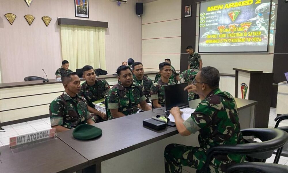 Pendiv2 – Satuan Yonkes 2/ Yudha Bhakti Husada terima pemeriksaan dan pengawasan oleh tim Audit Kinerja Tahap I Itkostrad yang dilaksanakan di Resimen Armed 2, Blimbing, Kota Malang. (15/03/2924).