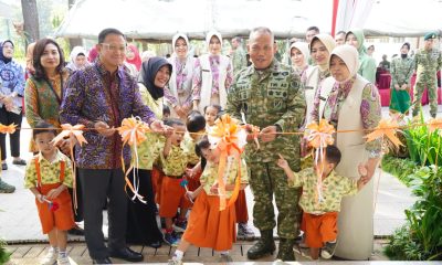 Pendiv2 – Panglima Divisi Infanteri 2 Kostrad Mayjen TNI Susilo didampingi Ibu Ketua Persit KCK Koorcab Divif 2 PG Kostrad meresmikan gedung KB PAUD Kartika IX...