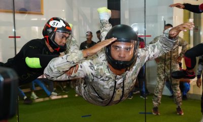 Pendiv2 – Sebagai bagian dari latihan inovatif Latma Malindo-8, prajurit Yonif 503/Mayangkara dan personel Tentara Diraja Malaysia mencoba simulator wind tunnel yang mensimulasikan sensasi terjun bebas....
