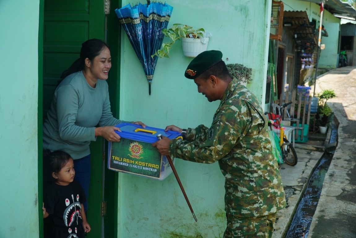 Tanamkan Rasa Peduli, Yonarmed 11/GG/2/2 Kostrad Laksanakan Bakti Sosial Pada HUT Ke-63 Kostrad