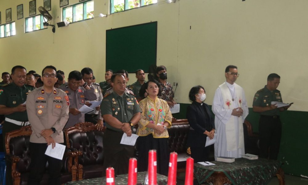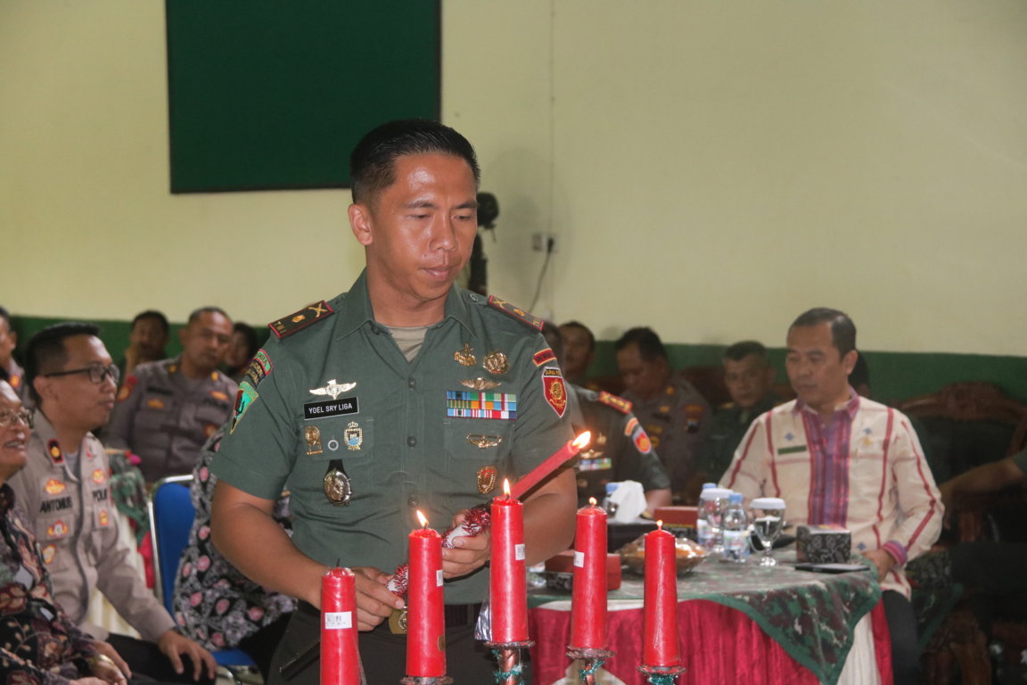 Pendiv2 – Mayor Inf Yoel Sry Liga S. Sos, Selaku Wadanyonif MR 412/BES/6/2 Kostrad menghadiri perayaan Natal tahun 2022 yang digelar di Kodim 0708 Purworejo bersama Polri dan Pemerintah Daerah Purworejo,di Aula Kodim 0708 Purworejo, Kamis (05/01/2023).
